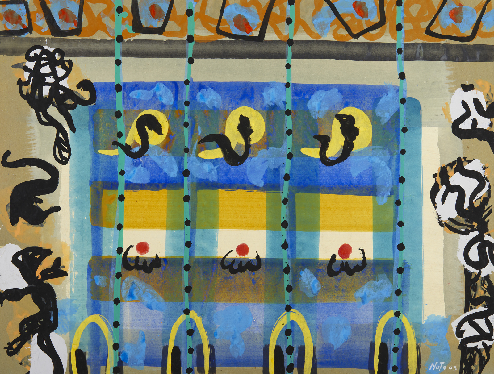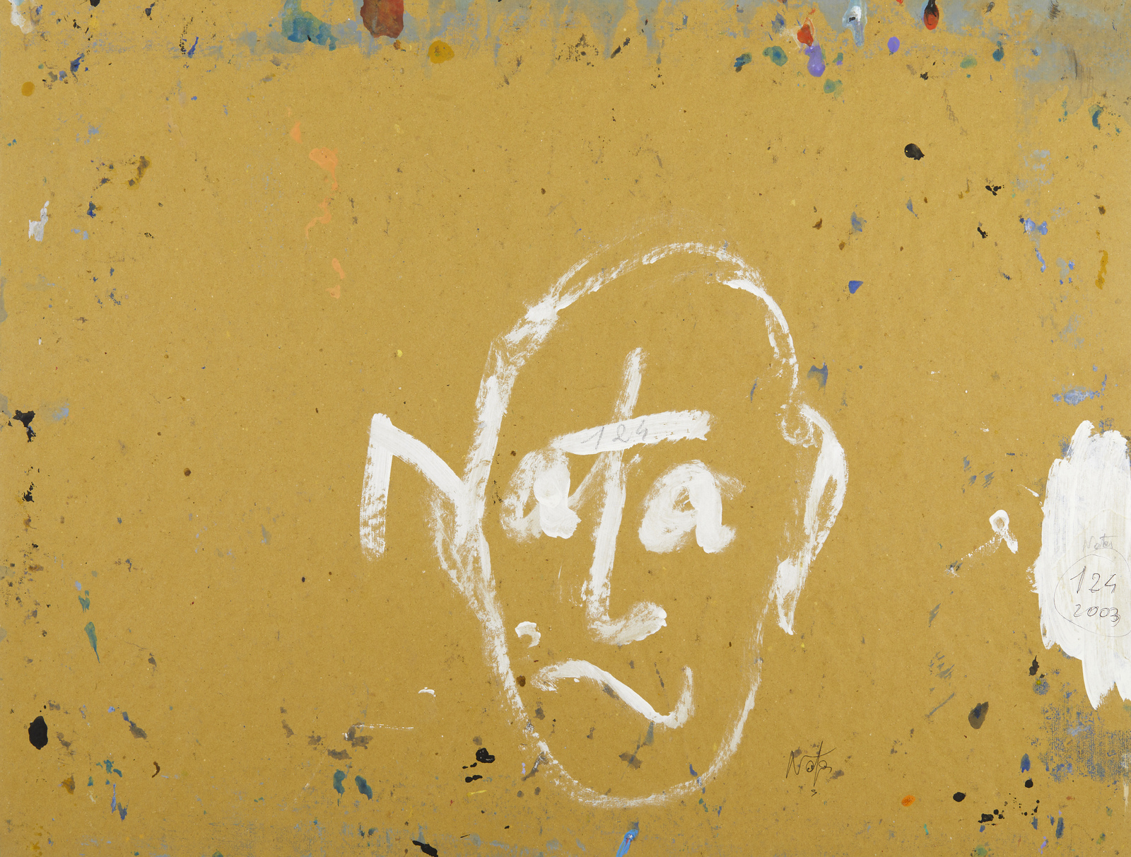 NATA Nero a colori. 2003. Tecnica mista su carta. Cm 77,00 x 59,00. Firma e anno in basso a destra e al retro. Lievi difetti.