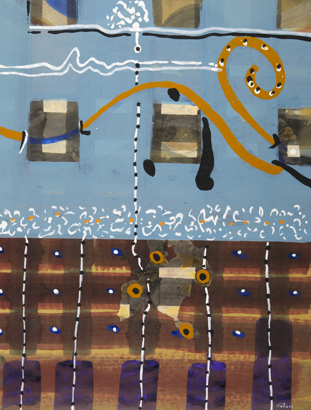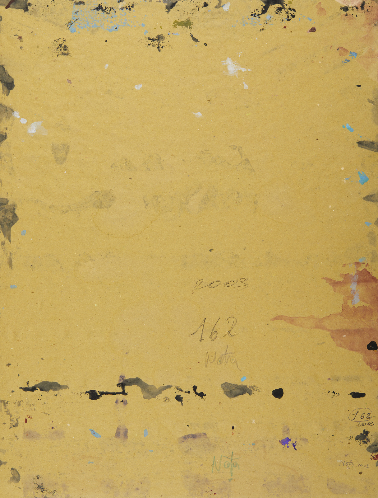 NATA Nero a colori. 2003. Tecnica mista su carta. Cm 59,00 x 77,00. Firma e anno in basso a destra e al retro.