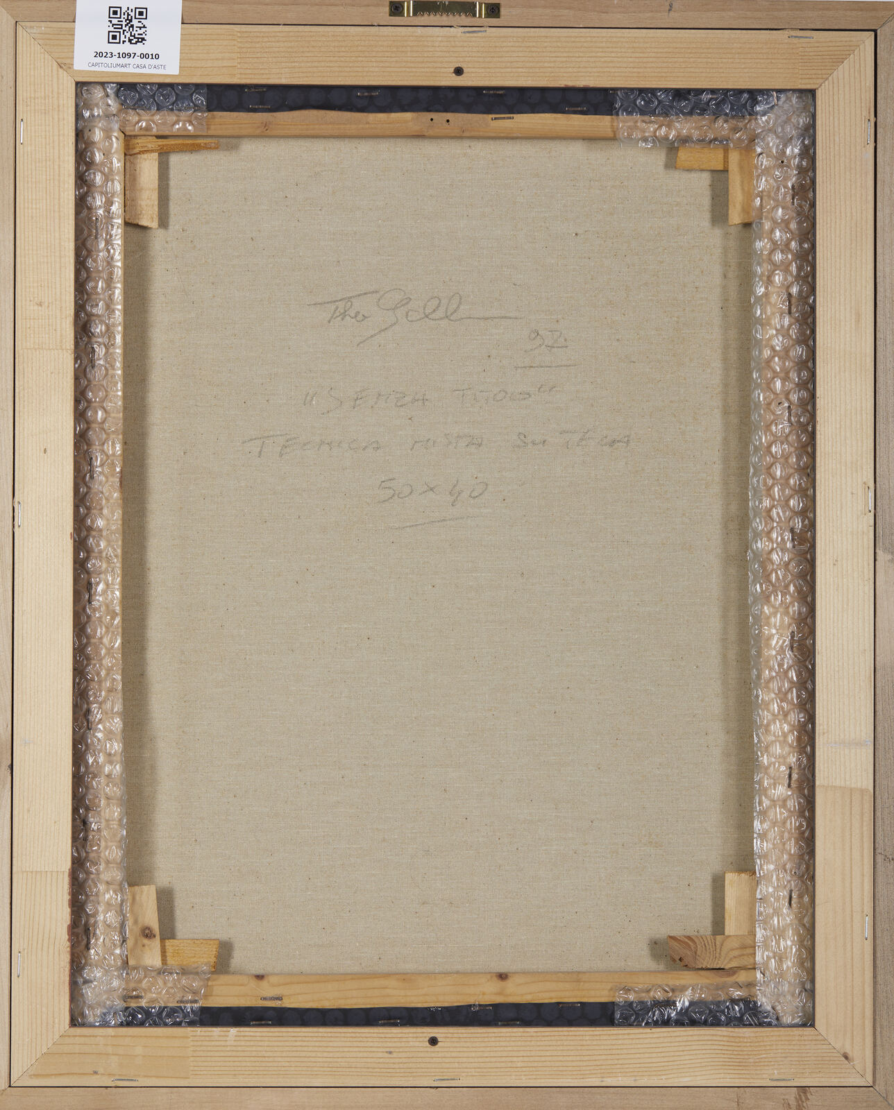 GALLINO THEO (n. 1957) Senza titolo. 1997. acrilico e tecnica mista su tela. Cm 37,50 x 48,00. Firma al retro. Autentica dell'artista su fotografia riportante il relativo numero di inventario.