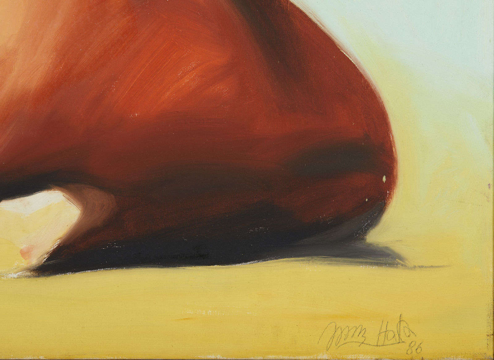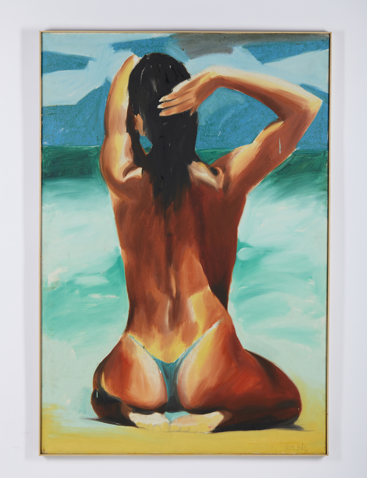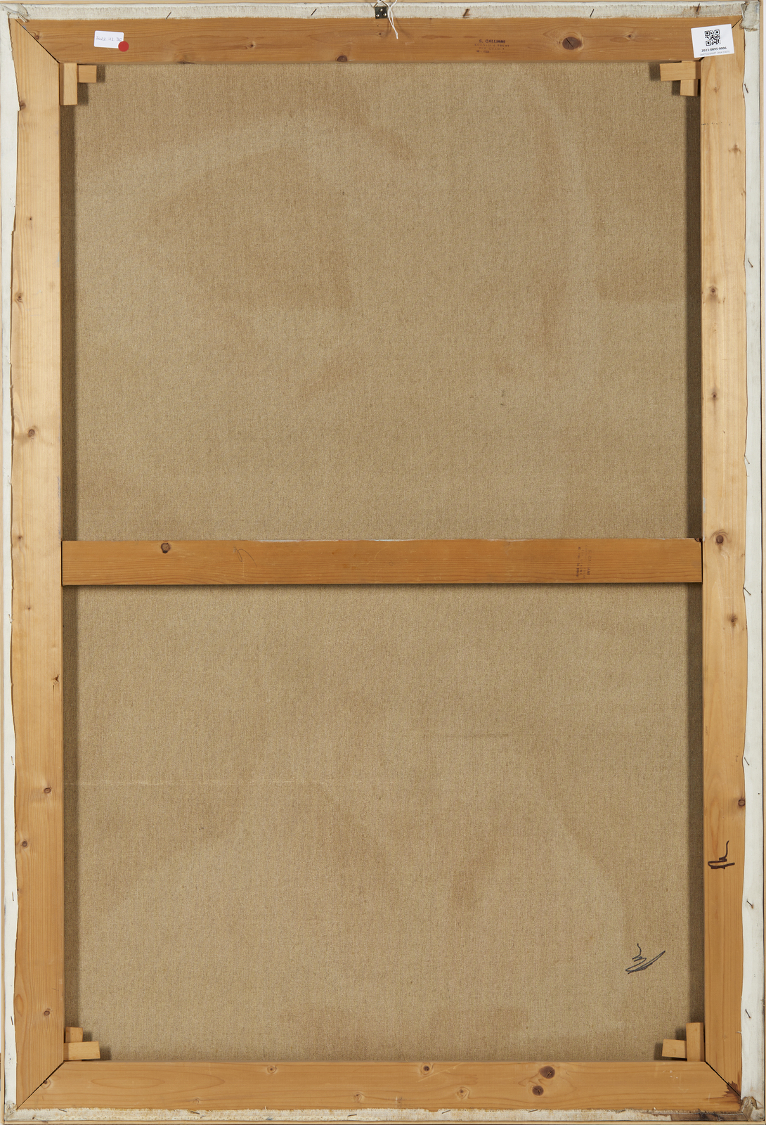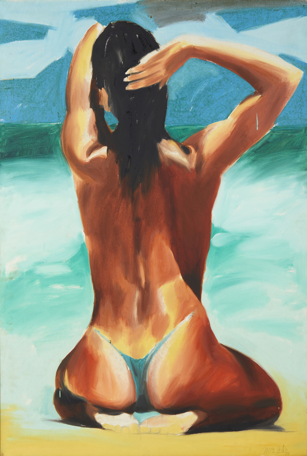 JANUSZ HAKA (n. 1951) Shampoo. 1987. Olio su tela . Cm 100,00 x 147,00. Firma e anno in basso a destra. Pubblicazioni: Janusz Haka. Big works 1986/1987, a cura di Renato Brilli, Studio d'arte Raffaelli, Trento, 1987. Lievi difetti. Cornice presente