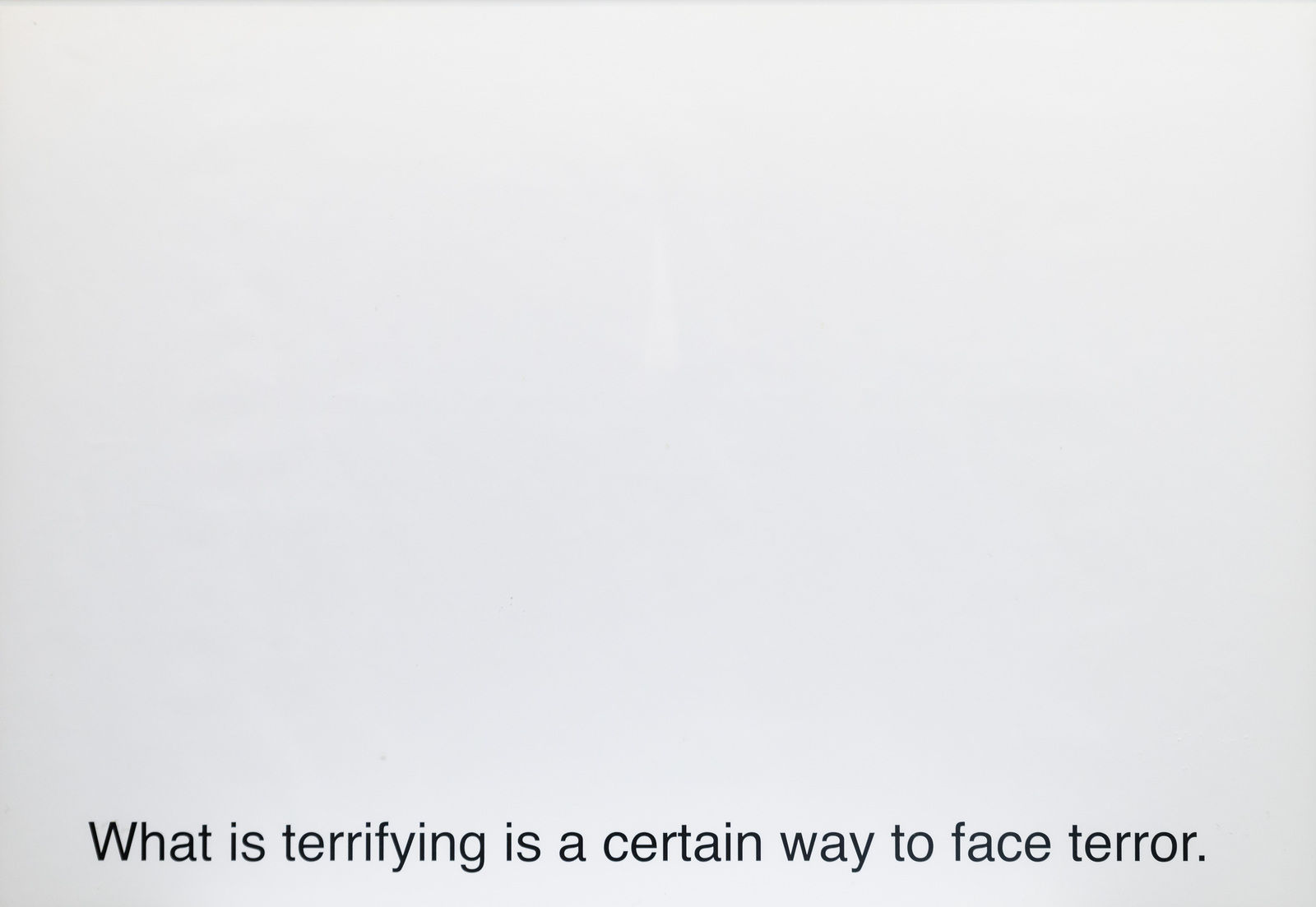 FONTAINE CLAIRE (n. 2004) "What is terrifyng is a certain way to face terror" . 2011. Stampa Offset. Cm 60,00 x 83,00. Lotto composto da n.2 poster.