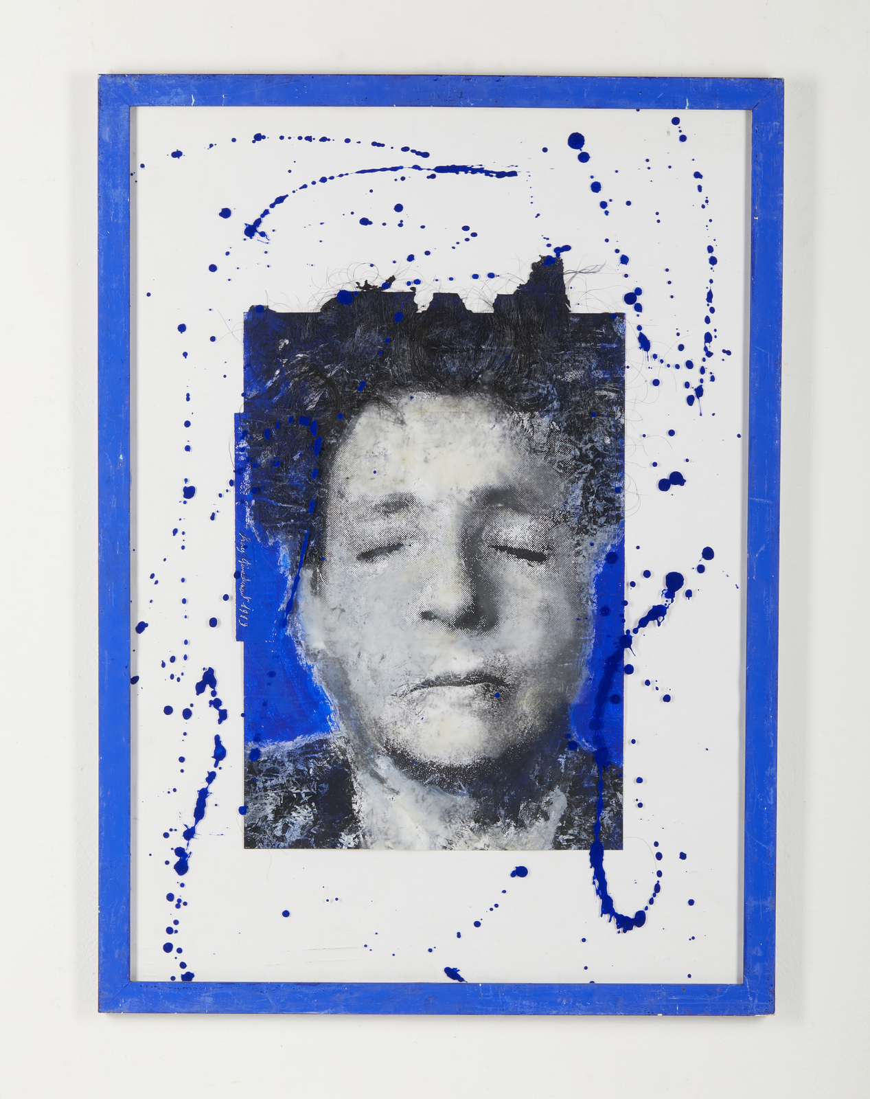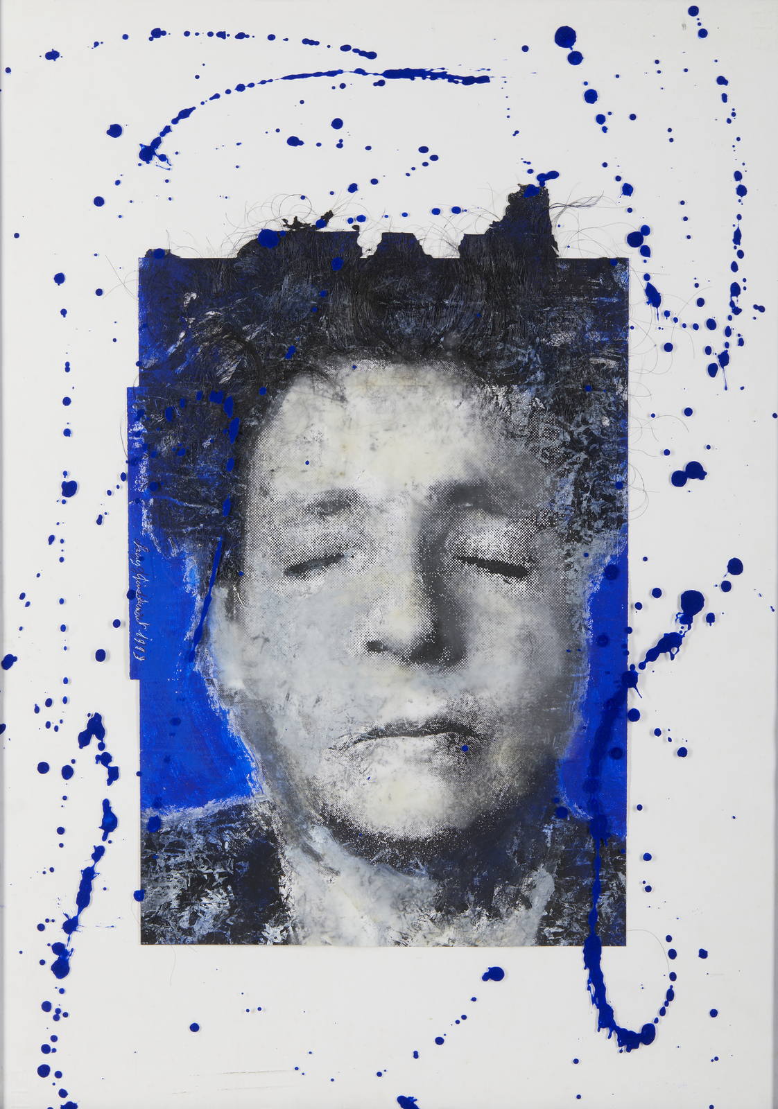 GINEDUMONT LORY (n. 1963) Ritratto. 1989. Tecnica mista e collage su carta. Cm 50,00 x 70,00. Firma e anno al centro a sinistra. Lievi difetti. Cornice presente