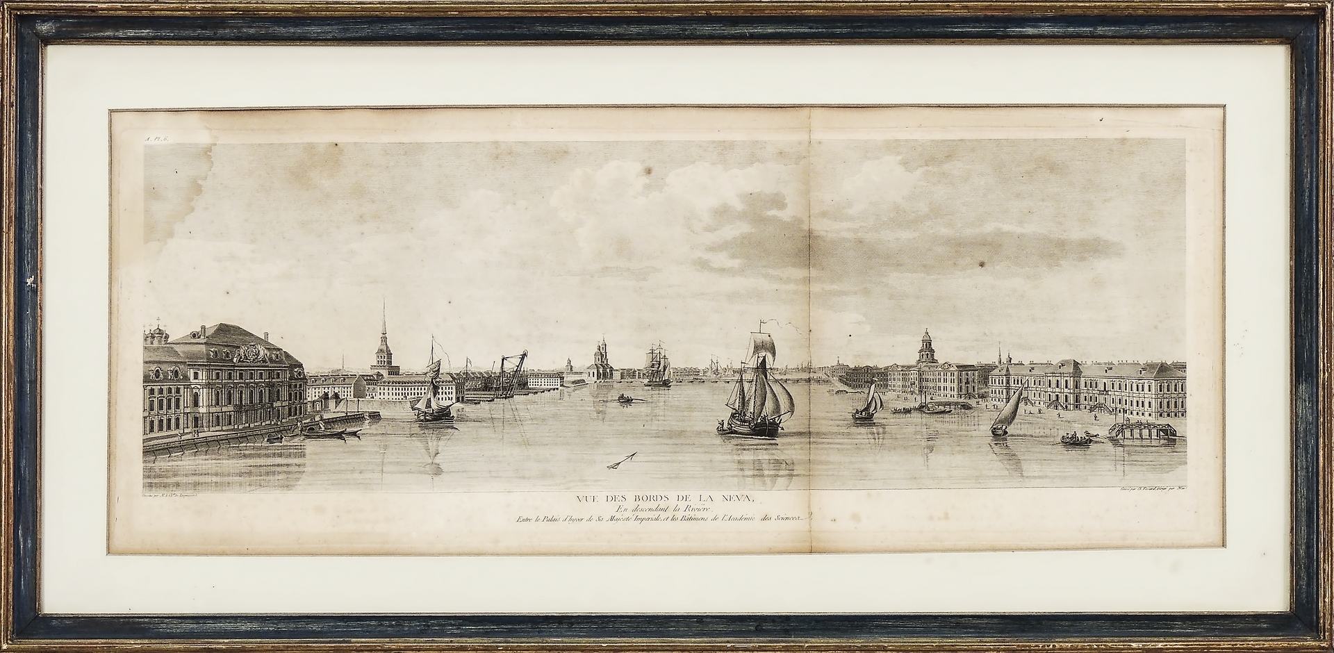 CLAUDE MATHIEU FESSARD (1740-?) Veduta della Neva a San Pietroburgo - Neva View incisione - engraving, in cornice, lievi tracce di foxing cm 25x66