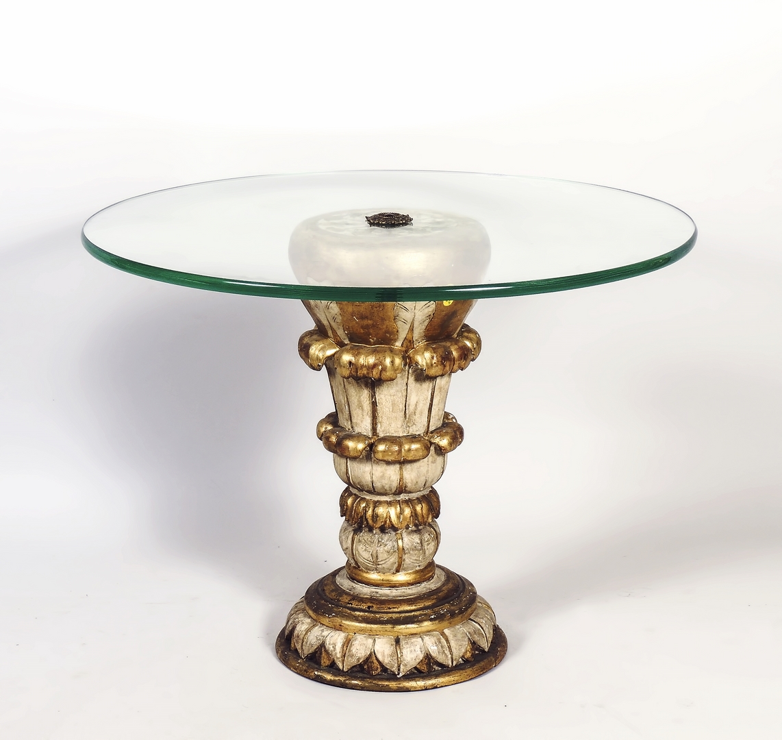 TAVOLINO BASSO - ROUND GILTWOOD AND CRYSTAL TABLE piano circolare in...