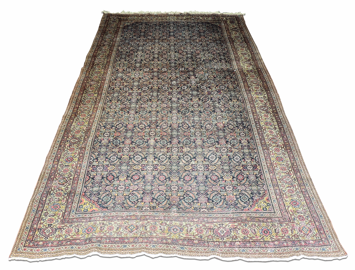 TAPPETO PERSIANO - PERSIAN RUG di antica manifattura, fondo blu, campo a...