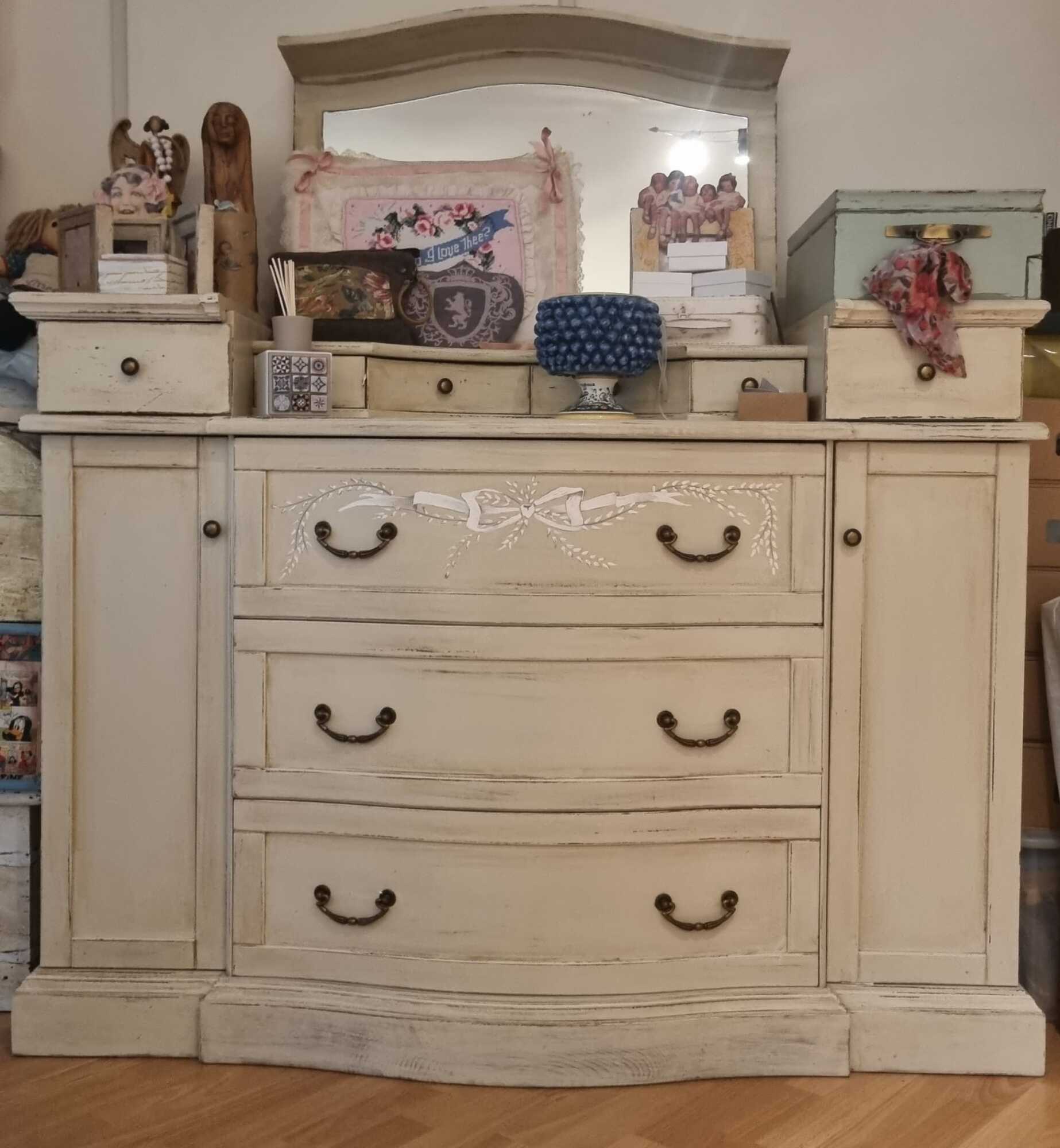 Comò tre cassetti, due ante, tre cassettini con specchio