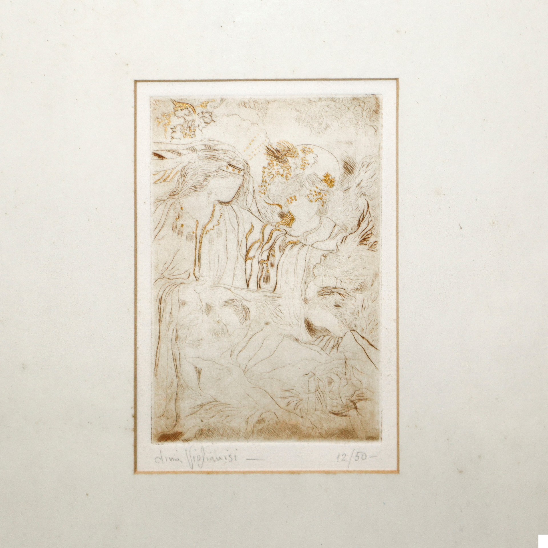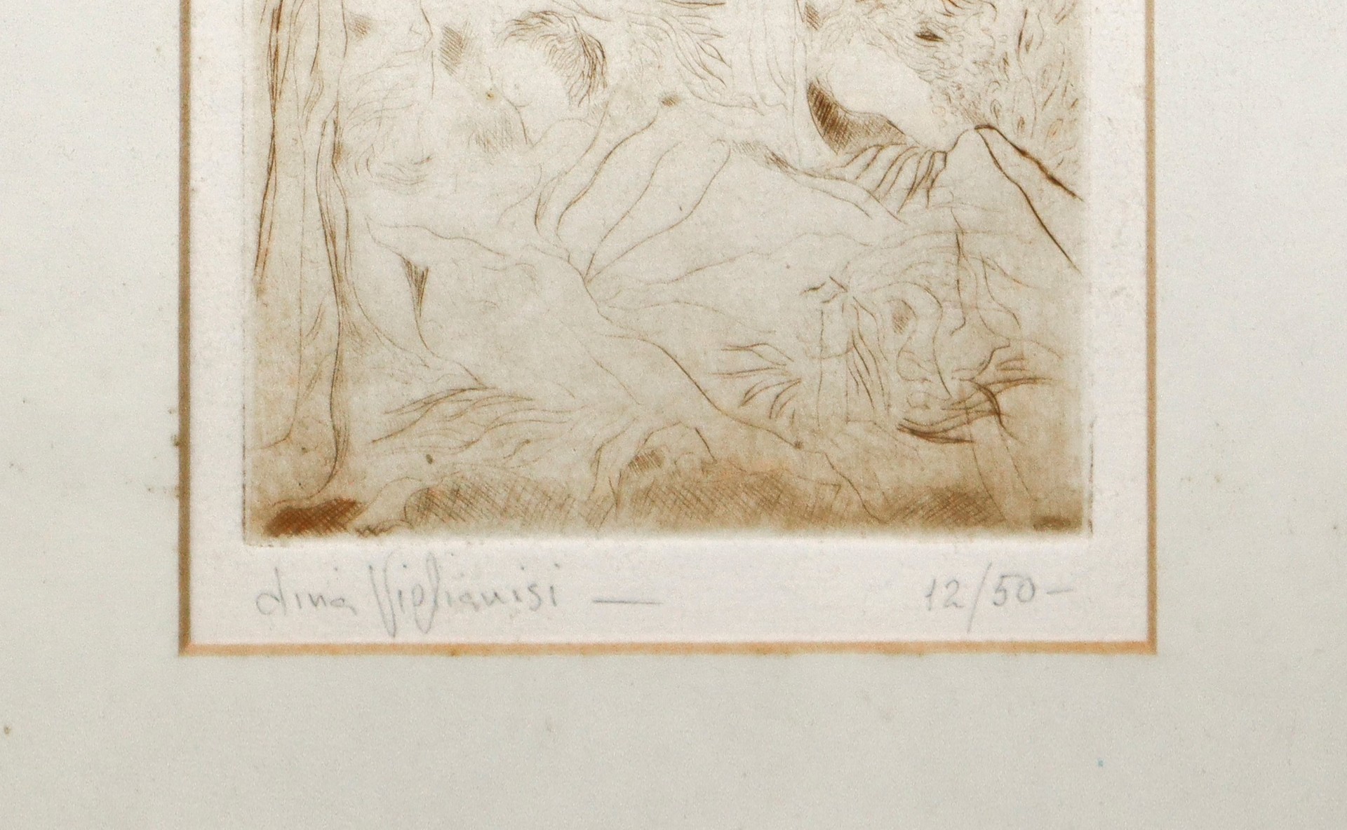 Dina Viglianisi (Catania 1939) - Senza titolo cm 15x10 in cornice cm 47x37 Incisione su carta Es.12/50. Firma e tiratura al fronte