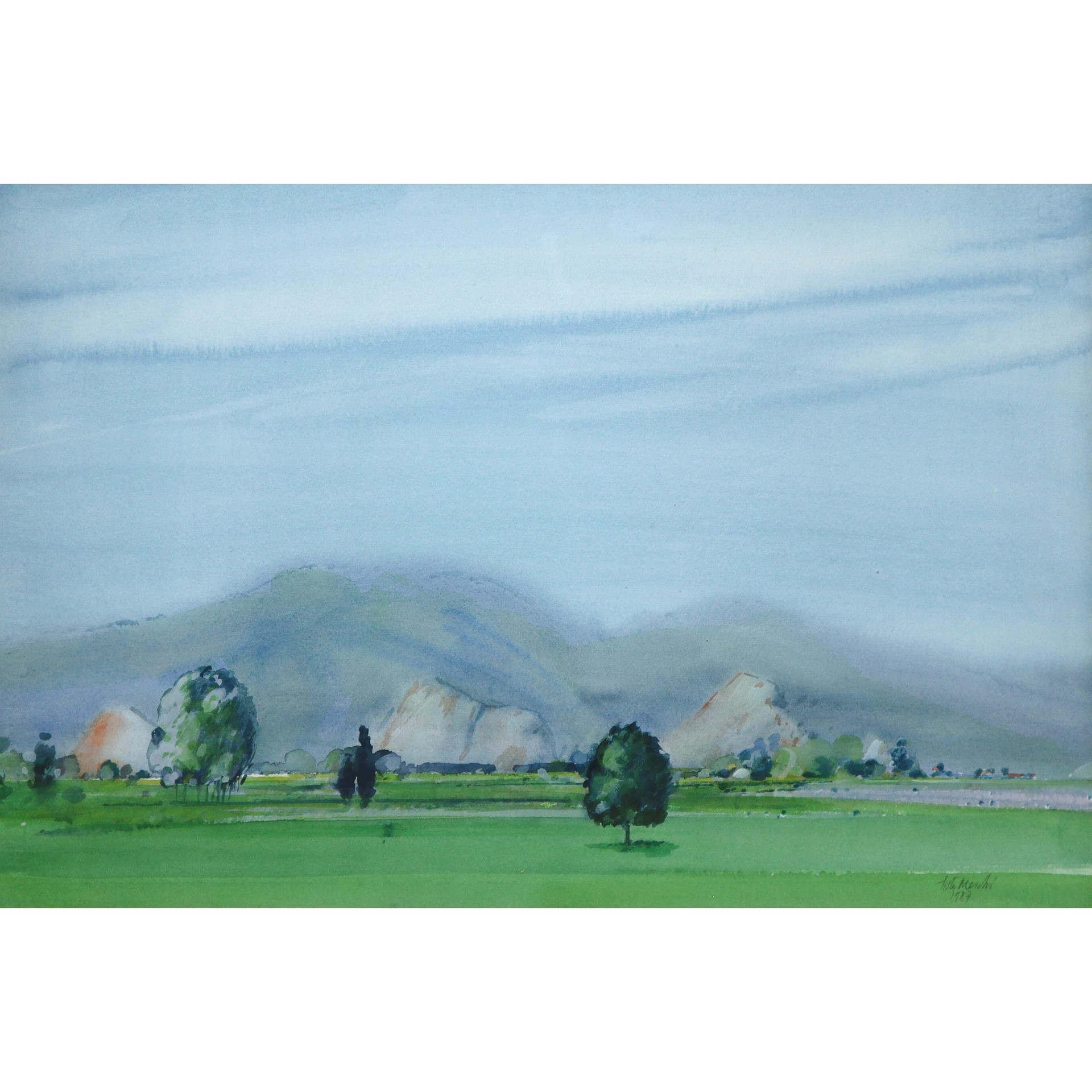 Tista Meschi (1935) - Paesaggio, 1997 cm 36x54, in cornice cm 52x70 Acquerello su carta Firmato e datato sul fronte in basso a destra.