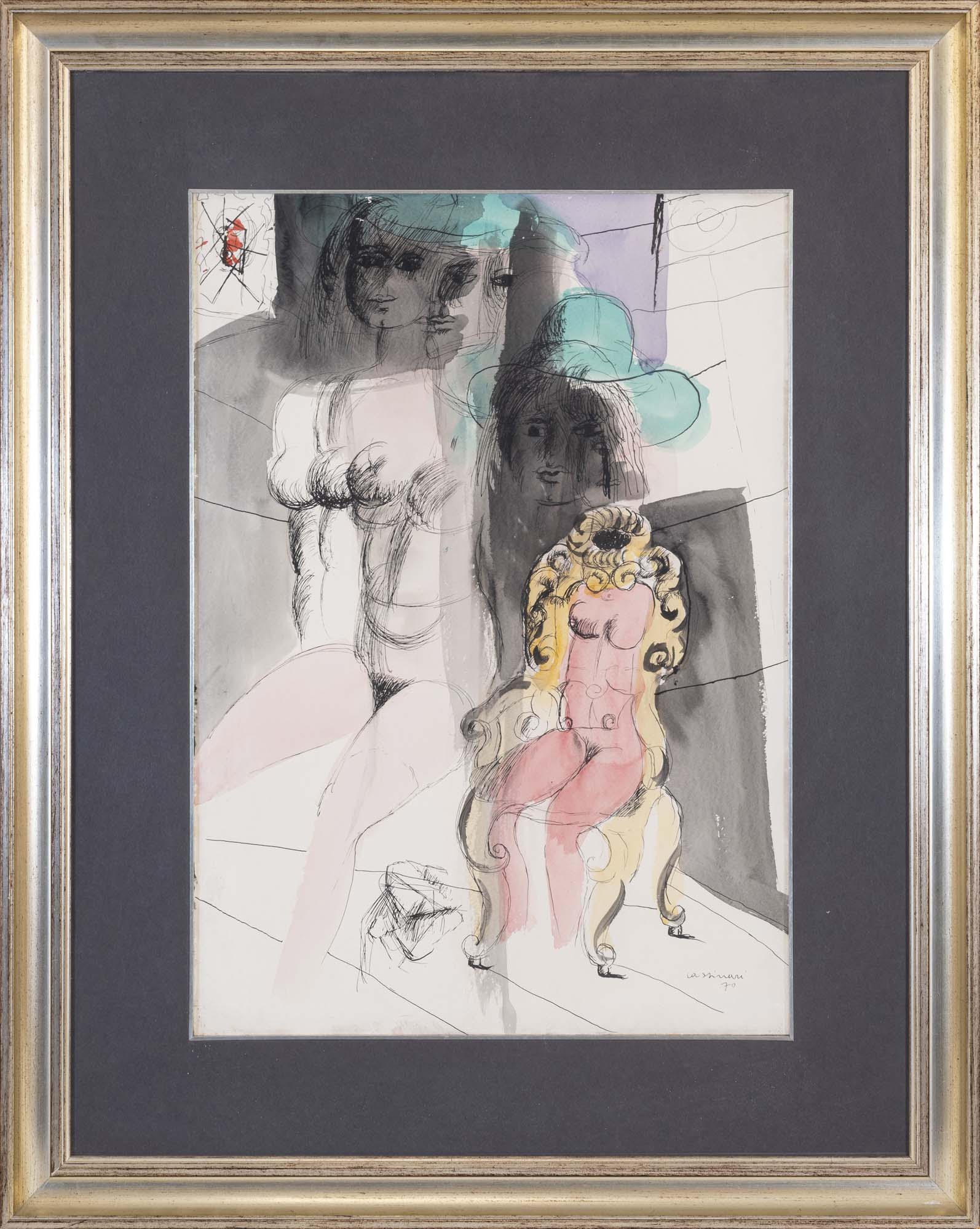BRUNO CASSINARI (Piacenza, 1912 - Milano, 1995) Nudi 1970 tecnica mista su...