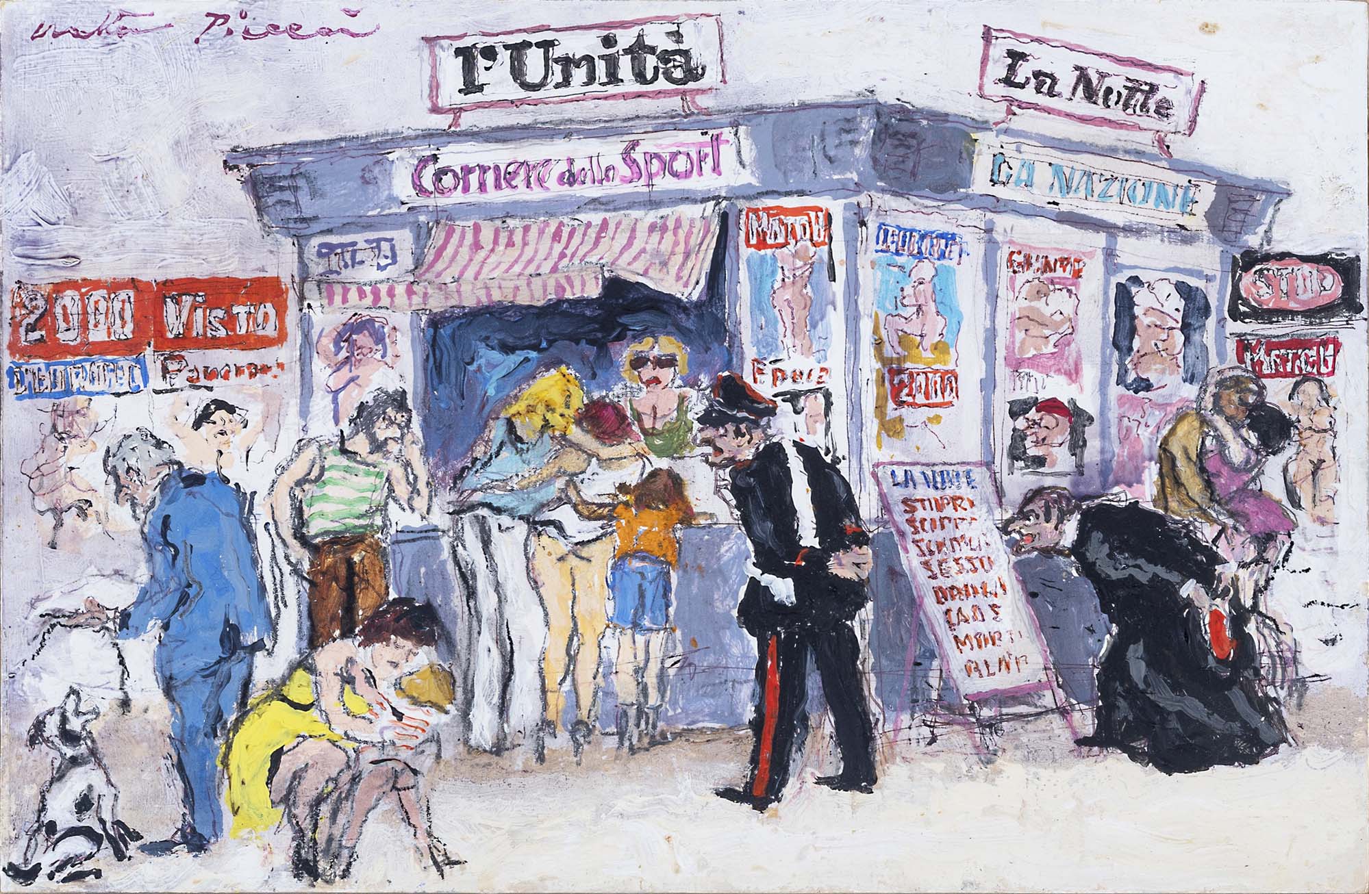 WALTER PIACESI (Ascoli Piceno, 1929 - 2022) L'edicola 2001 olio e tecnica...