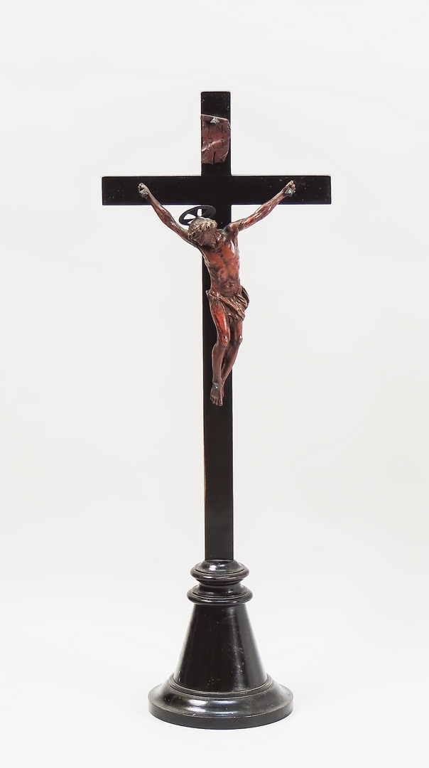 CRISTO INTAGLIATO IN LEGNO DI BOSSO - CARVED BOXWOOD FIGURE OF CHRIST XVIII secolo - 18th Century su crocifisso in legno ebanizzato h cm 56