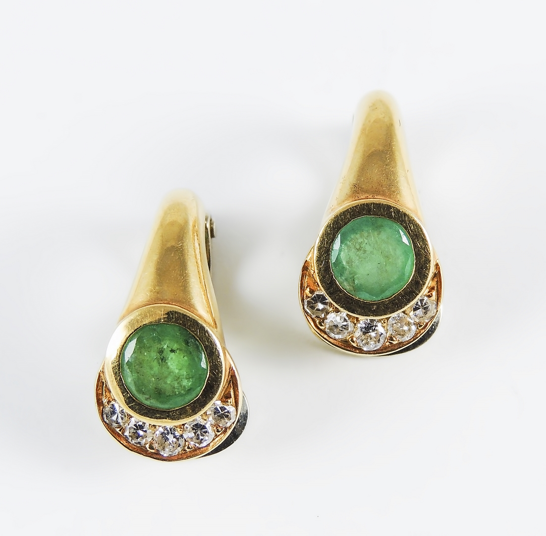 PAIO DI ORECCHINI IN ORO GIALLO, SMERALDI E BRILLANTI - PAIR OF GOLD, EMERALD AND DIAMOND EARRINGS gr 6,8