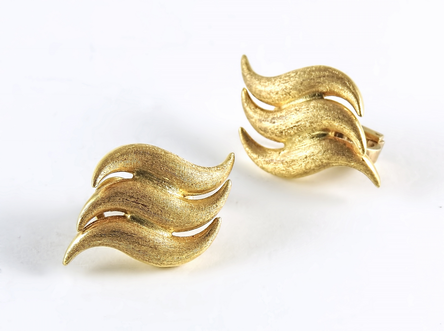 PAIO DI ORECCHINI IN ORO - GOLDEN EARRINGS Chiampesan, Vicenza ciascuno realizzato come tre piccole foglie stilizzate, firmati gr 10