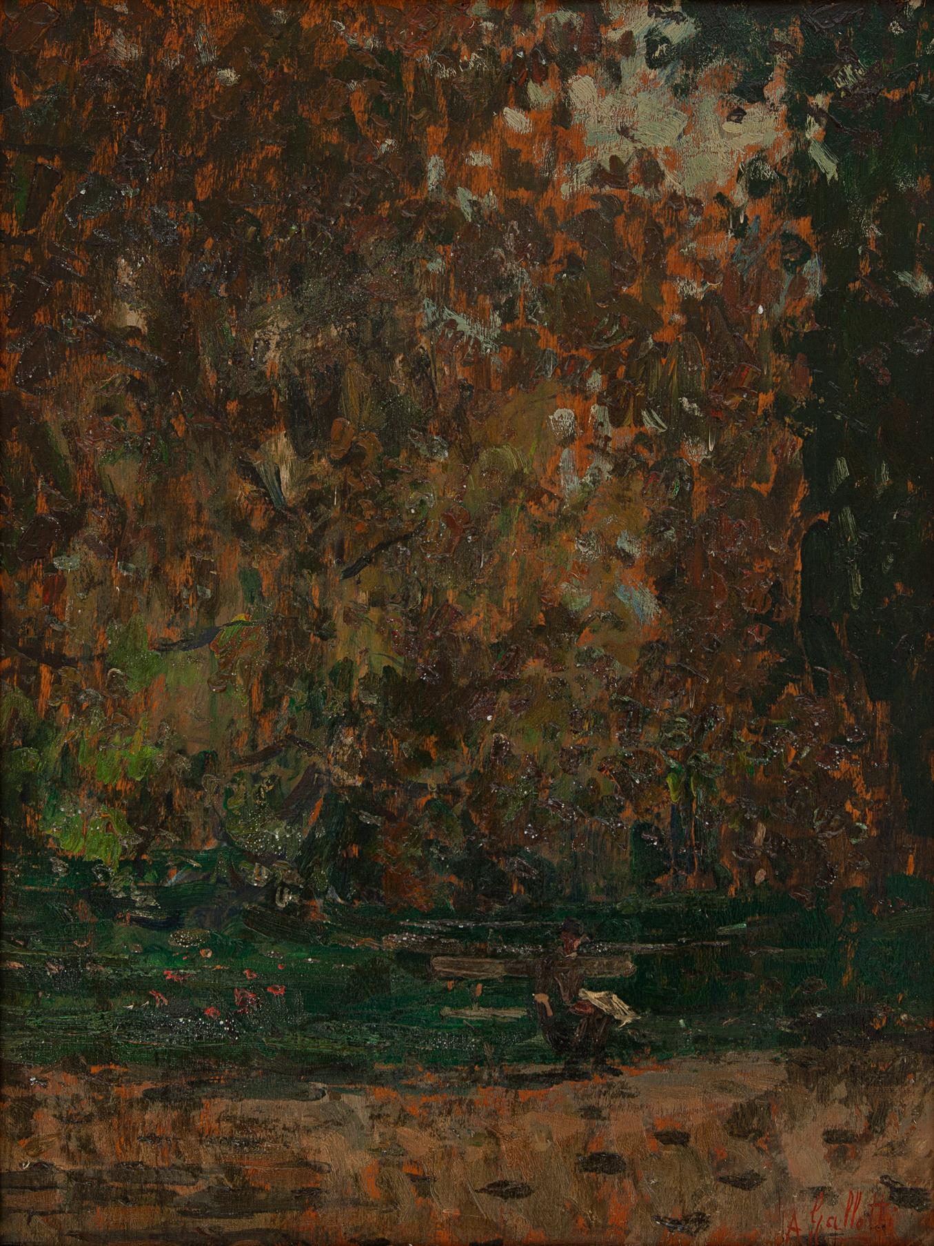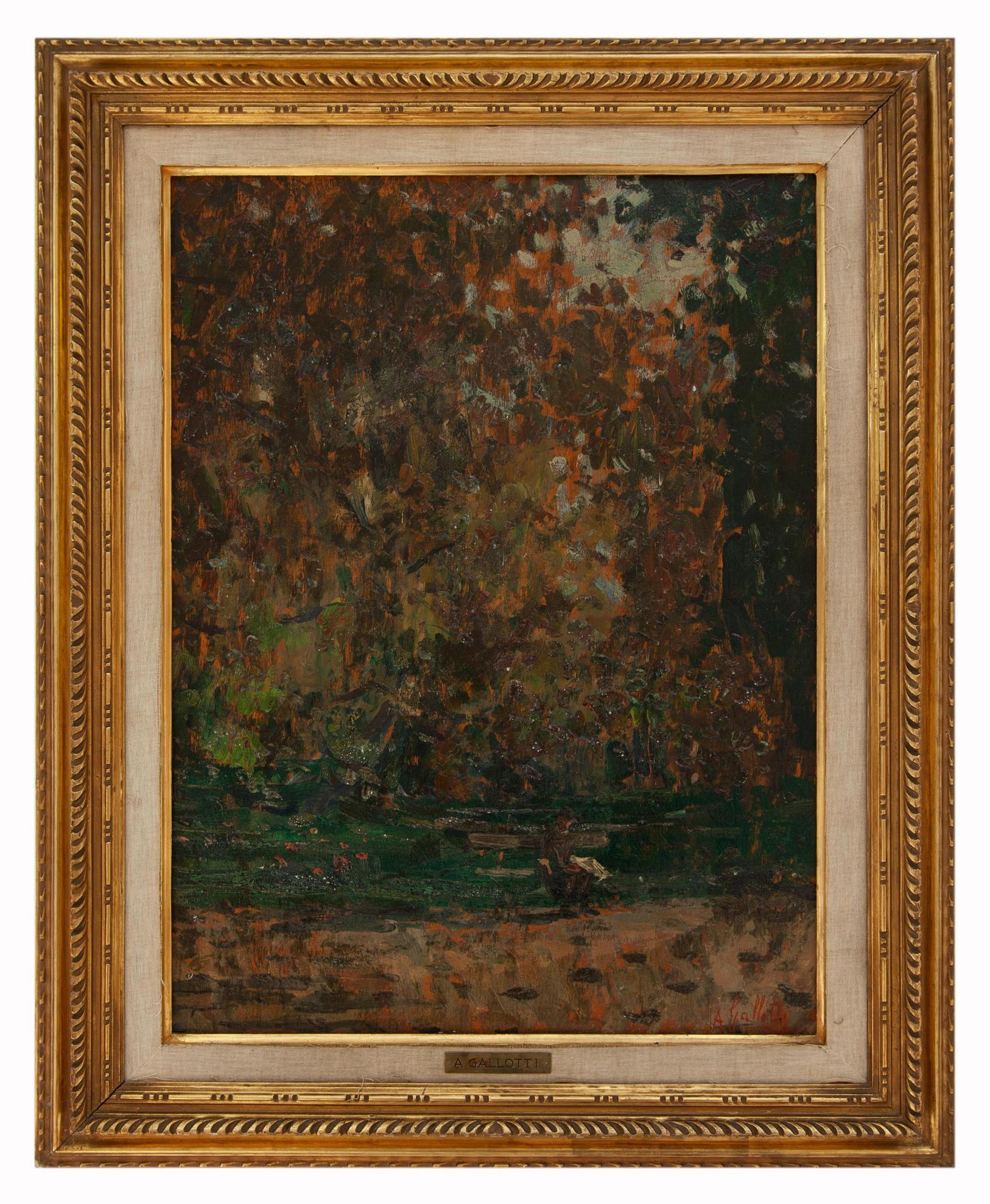 Alessandro Gallotti Pavia 1879 - Milano 1961 Figura nel parco Olio su tavola cm 61,5x46,5