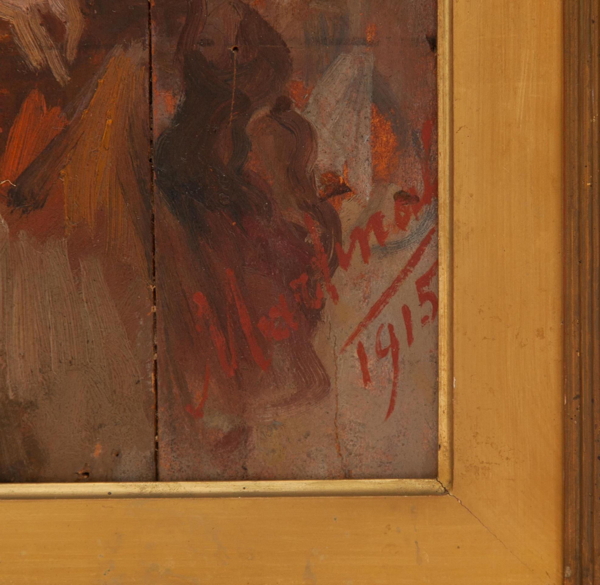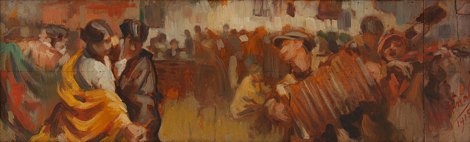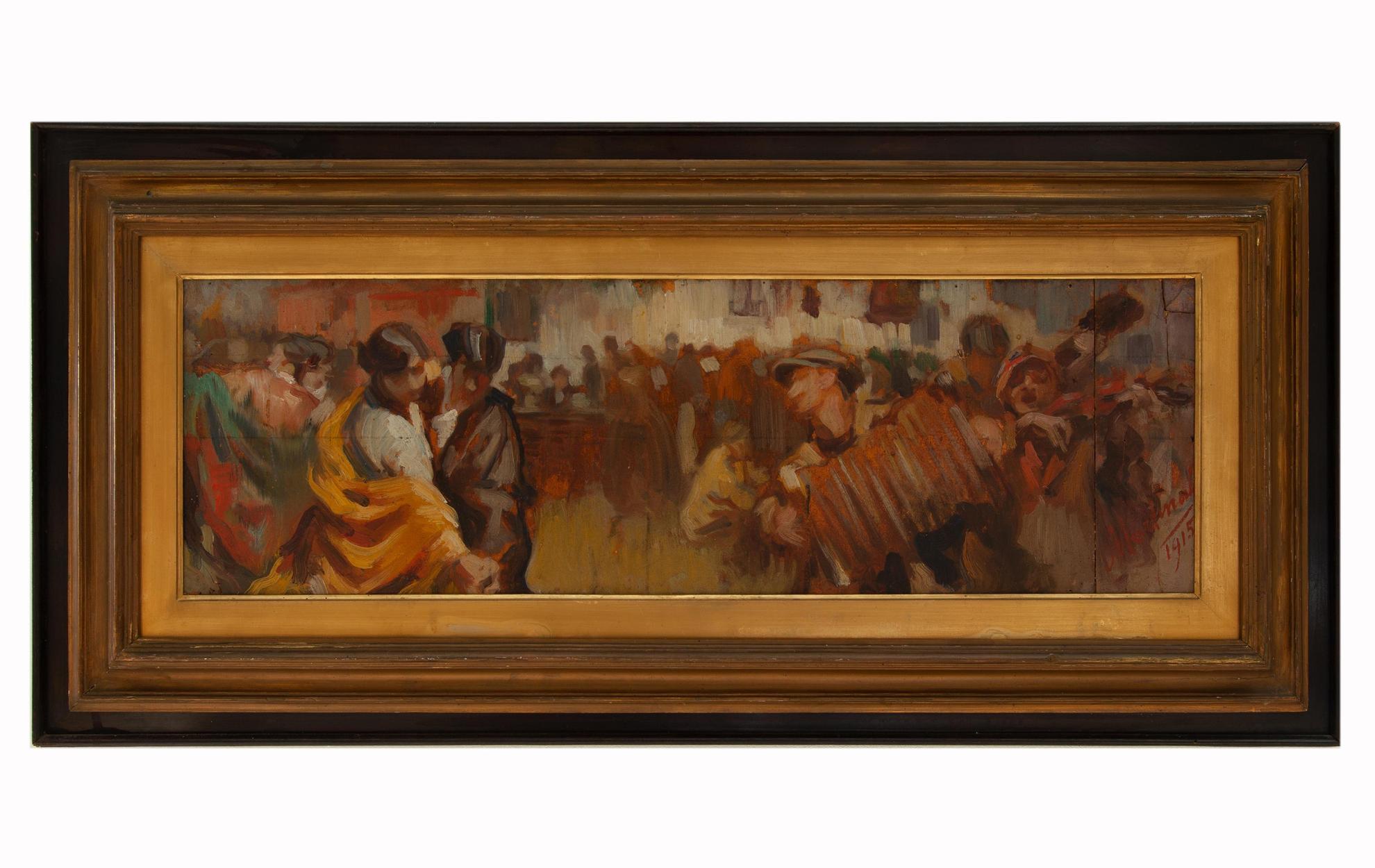 Umberto Martina Dardago di Budoia (PN) 1880 Tauriano 1945 (PN) Festa da ballo Venezia1915 Olio su cartone cm 22x68