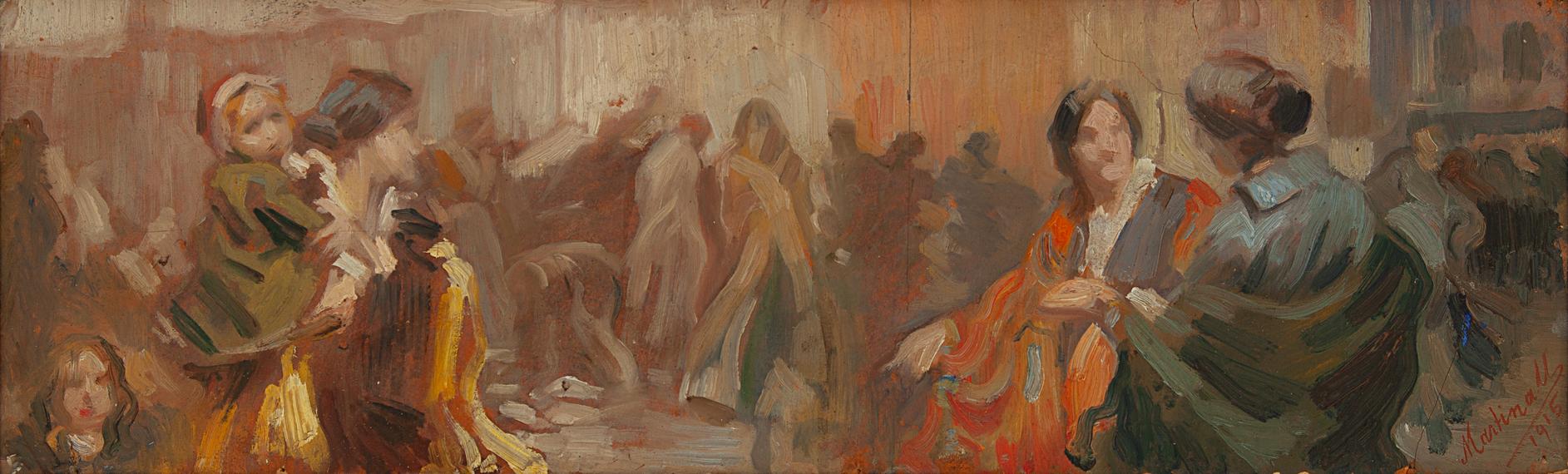 Umberto Martina Dardago di Budoia (PN) 1880 Tauriano 1945 (PN) Vita a Venezia 1915 Olio su cartone cm 22x68