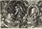 Aegidius Sadeler II, Allegoria della Morte con doppio ritratto di Bartholomäus Spranger e della moglie Christina Müller. 1600. Bulino. mm 296x417. Hollstein, 332. Bellissima impressione nel I stato di 2 avanti l'excudit di Marco Sadeler su carta vergellata sottile con filigrana "stemma con pigna di Augsburg e lettere M" (Meder, 178). Spranger, a sinistra, è raffigurato circondato dalla Pittura, dal Disegno e dalla Scultura, in alto sopra di lui la Fama e un putto che regge una corona d'alloro. L'artista indica il monumento funebre della moglie di fronte a lui, preceduto dal Tempo con la sua falce e dalla figura scheletrica della Morte che impugna una freccia, ai lati dell'urna la Pietà, con Bibbia e crocefisso, e Minerva; di fronte un putto, con il piede su una clessidra, regge un teschio accanto a una torcia spenta. (1)