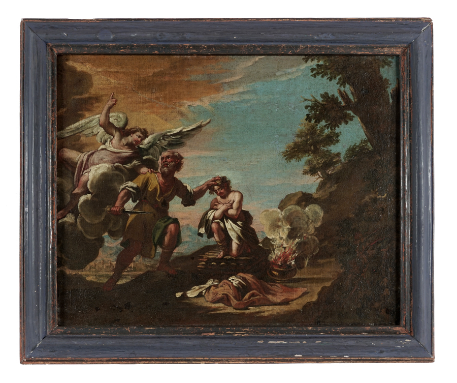 Scuola veneta del XVIII secolo, Il sacrificio d'Isacco. Olio su tela. cm 42x53. (1)