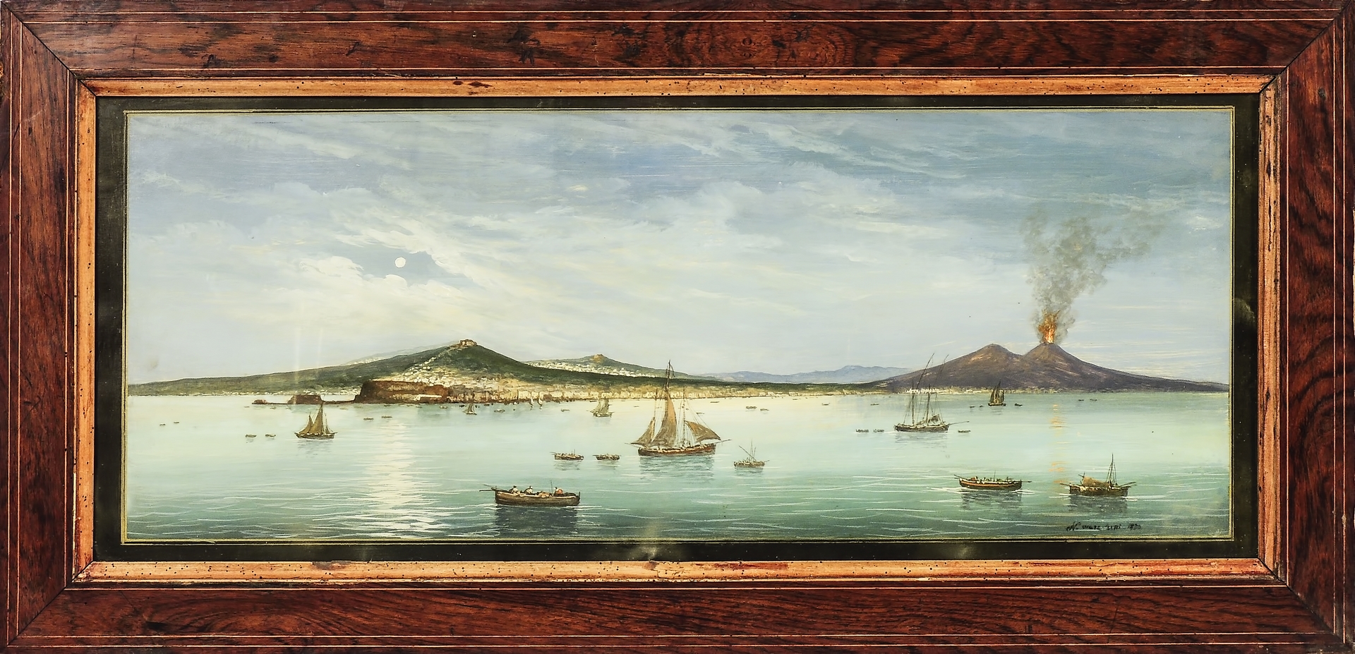 IL GOLFO DI NAPOLI - GULF OF NAPLES gouache su carta - gouache on paper, in cornice cm 30x77