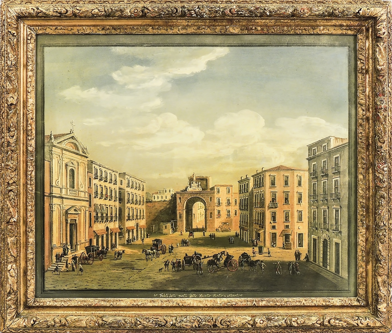 VEDUTA DELLA PORTA DELLO SPIRITO SANTO A NAPOLI - NAPLES VIEW gouache su carta - gouache on paper, in cornice cm 55x68