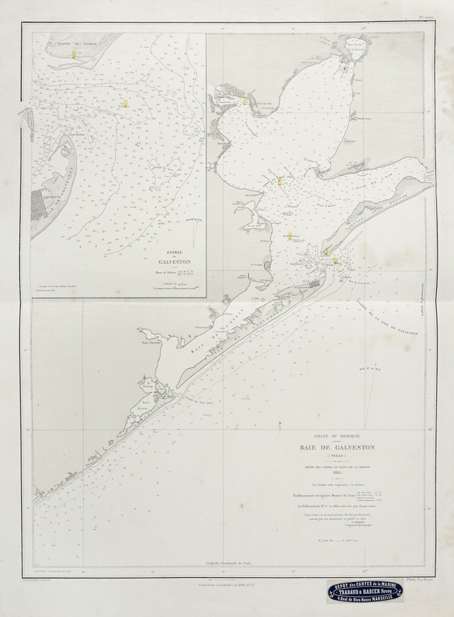 Régnier et Dourdet, Golfe du Mexique / Baie de Galveston (Texas). Paris: Dépôt des Cartes et Plans de la Marine, 1865 (Corrections essentielles en 1868, 1872) / Paris: Régnier et Dourdet [1872].