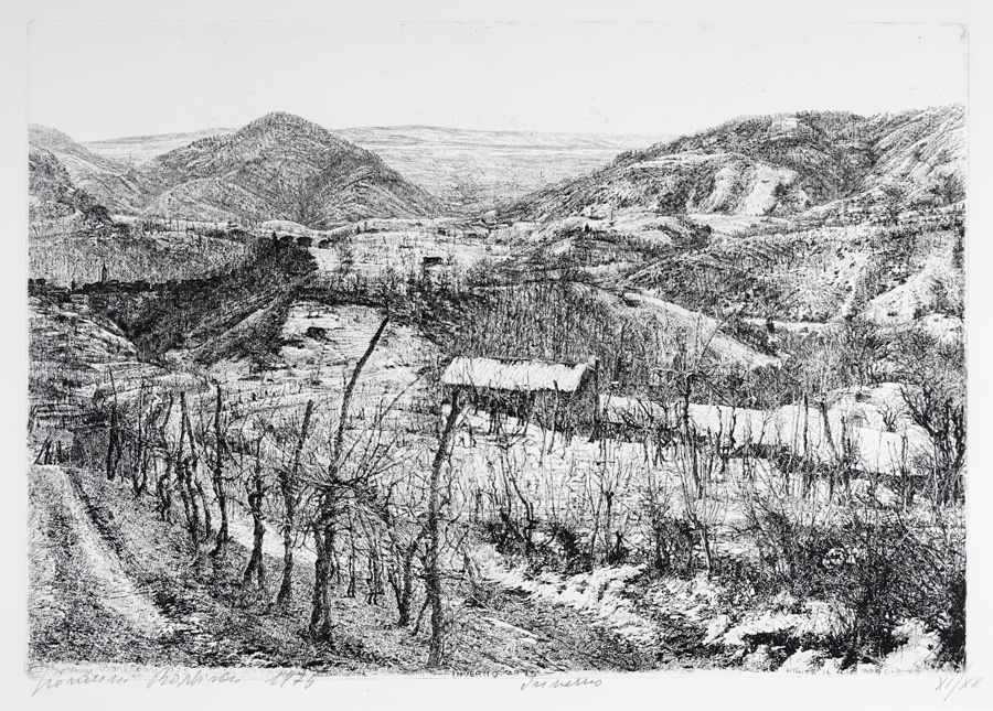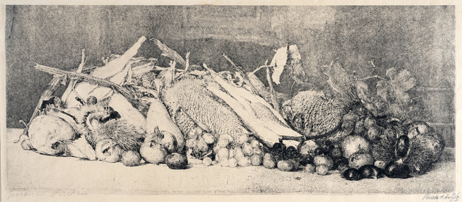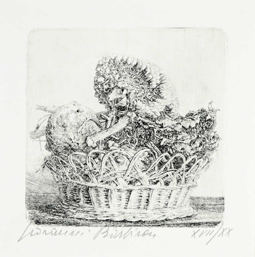 Giovanni Barbisan, Lotto composto di 5 incisioni. 1957-75. Raccolta di 5 acqueforti. mm 130/375x100/685. Foglio: mm 215/500x215/850. Tutte firmate ed alcune datate in lastra al margine inferiore. Ogni opera presenta firma e tiratura a matita ai piedi di ogni battuta. Tre sono ulteriormente datate a matita. Compongono il lotto le incisioni Inverno ed Autunno, della quale troviamo due formati differenti. Le due nature morte senza titolo presentano una dedica incisa in lastra al margine inferiore. (5)