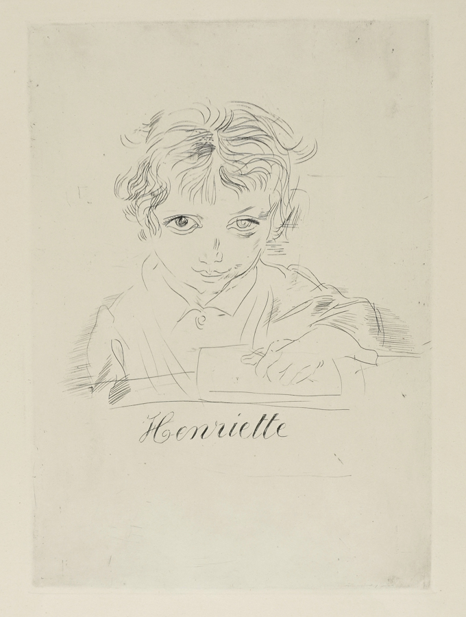 Raoul Dufy, Henriette. 1927 ca. Acquaforte. mm 395x280. Foglio: mm 500x450. Titolata in basso al centro. Al verso a matita firma "R. Dufy", forse autografa. (1)