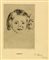 Edvard Munch, Kinderkopf. 1905. Acquaforte. mm 175x125. Foglio: mm 315x238. Firmata e datata a matita in basso a destra. Titolata in lastra al margine inferiore. Etichetta contenente i dati editoriali al verso. Lastra incisa e stampata nel 1905, successivamente pubblicata nella rivista artistica Zeitschrift fur Bildende Kunst come frontespizio nel 1908. Incisione conosciuta anche con il titolo di Mädchenkopf. (1)