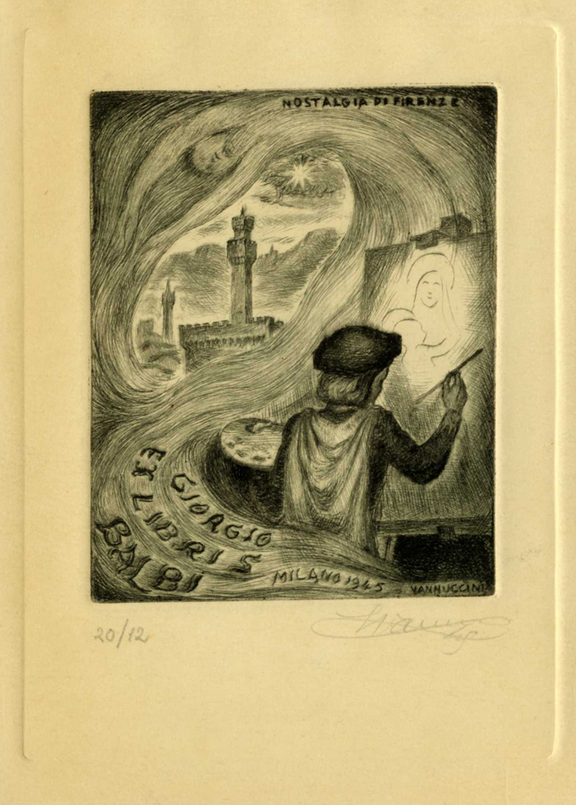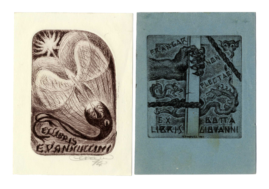 Enrico Vannuccini, Lotto composto di 9 ex libris. 1945-79.