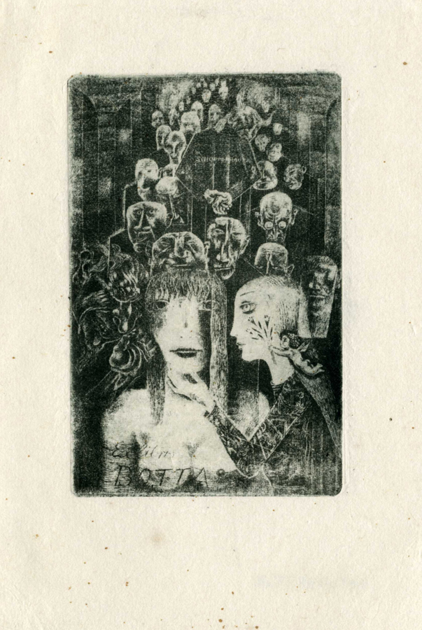 Michel Fingesten, Lotto composto di 4 ex libris a tema romantico. 1) Ex libris Giovanni Botta. Fotoincisione. mm 94x80. Foglio: mm 147x133. MIRABELLA-BARDAZZI-BALLERINI, 302. 2) Ex libris [Giovanni] Botta. Fotoincisione. mm 109x67. Foglio: mm 170x112. MICHEL FINGESTEN EXLIBRISKUNST, 99. 3) Ex libris Giovanni Botta. Fotoincisione. mm 85x58. Foglio: mm 140x105. MICHEL FINGESTEN EXLIBRISKUNST, 121. 4) Ex libris Giovanni Botta. Fotoincisione. mm 82x60. Foglio: mm 109x80. MICHEL FINGESTEN EXLIBRISKUNST, 111. Timbro dell'artista al verso. (4)