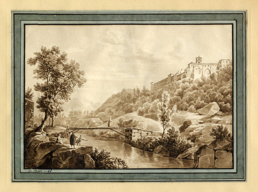 Giuseppe Bisi, Paesaggio. 1828. Acquerello e matita su carta. mm 145x210. Firmato e datato al margine inferiore sinistro. (1)