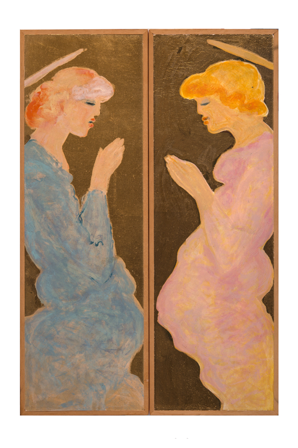 Salvatore Fiume, Il Cristo che sorride. 1997. Trittico composto da cinque graffiti a rilievo realizzati a tecniche miste su fondo di foglie d'oro applicate a mano. cm 61x41 (chiuso). cm 61x82 (aperto). Firma e tiratura a pennarello nero in basso ai lati del pannello centrale. Timbri a laser di Sanzanobi e di "Iubilaeum A.D. 2000" ai lati del margine inferiore del verso del pannello centrale. Opera accompagnata dal certificato di autenticità su fotografia. Es. 48/315. (1)