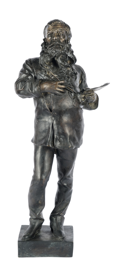 Vincenzo Gemito, Ernest Meissonier. Bronzo a cera persa. cm 55,5x21x13,5. Firma nello stampo sul retro della base insieme al timbro della fonderia Chiurazzi di Napoli. Ernest Meissonier rimane uno dei soggetti più ritratti da Gemito, il quale ha realizzato molti esemplari di questa scultura a figura intera, modificando spesso mani e pennelli. (1)