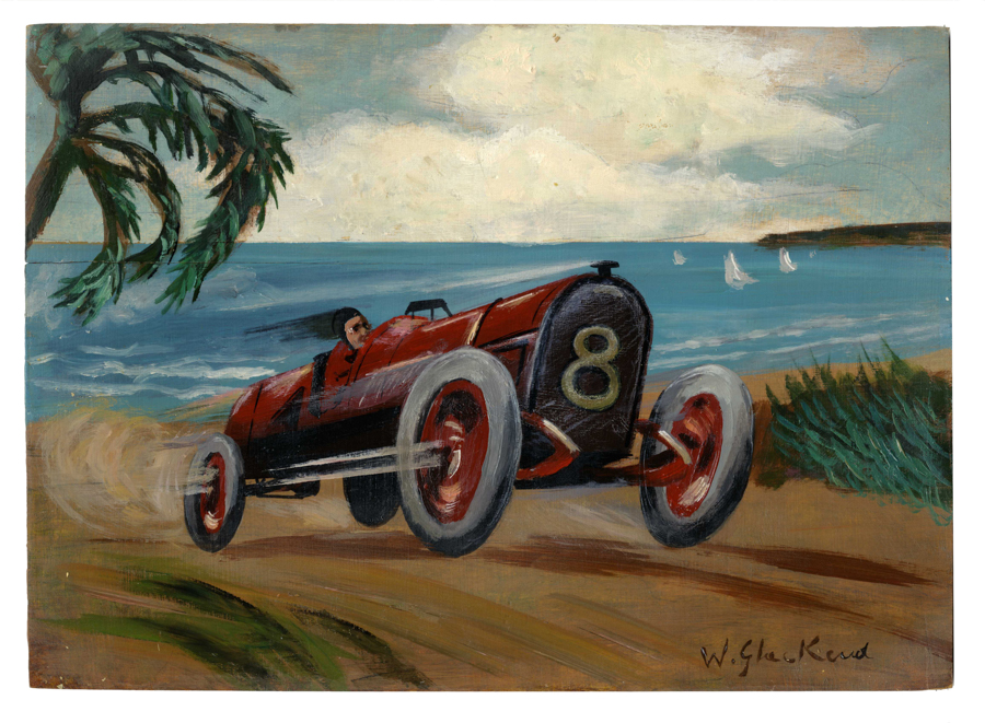 William Glackens, Racing Car. Anni '20 del XX secolo. Olio su tavola. cm 27x37. Firmato in basso a destra. (1)
