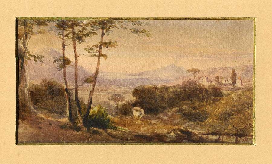 Luigi Lanza, Paesaggio. Acquerello su carta. Firmato nell'angolo inferiore destro. (1)