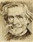 Pietro Pietra, Giuseppe Verdi. 1933. Acquerello e penna e inchiostro di china bruno su carta. mm 273x212 (visibile). Firmato e datato secondo l'era fascista in basso a destra. (1)