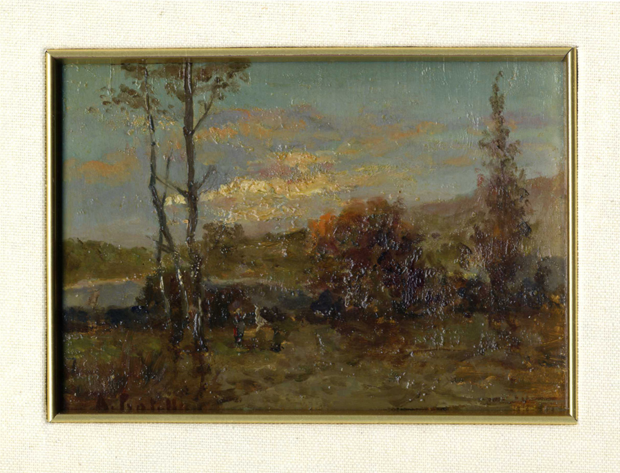 Attilio Pratella, Paesaggio. Olio su tavola. cm 13x17,5. Firmato in basso a sinistra. (1)