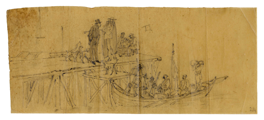 Amedeo Preziosi, Molo sul Corno d'Oro. 1870. Matita su carta lucida. mm 132x304. LEONE, 204. Provenienza: Galleria Alessandra Di Castro Antiques a Roma. (1)