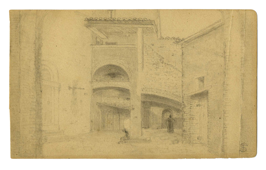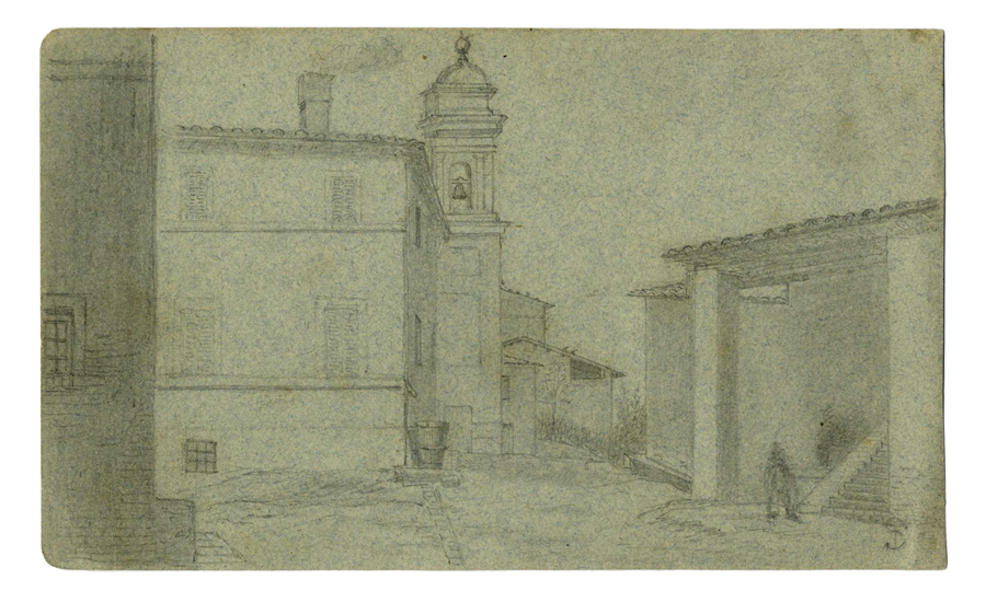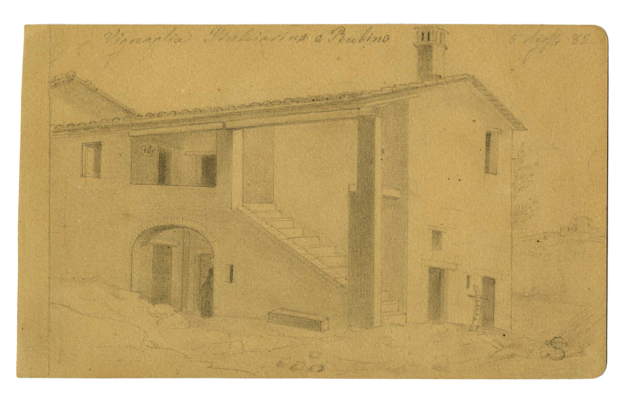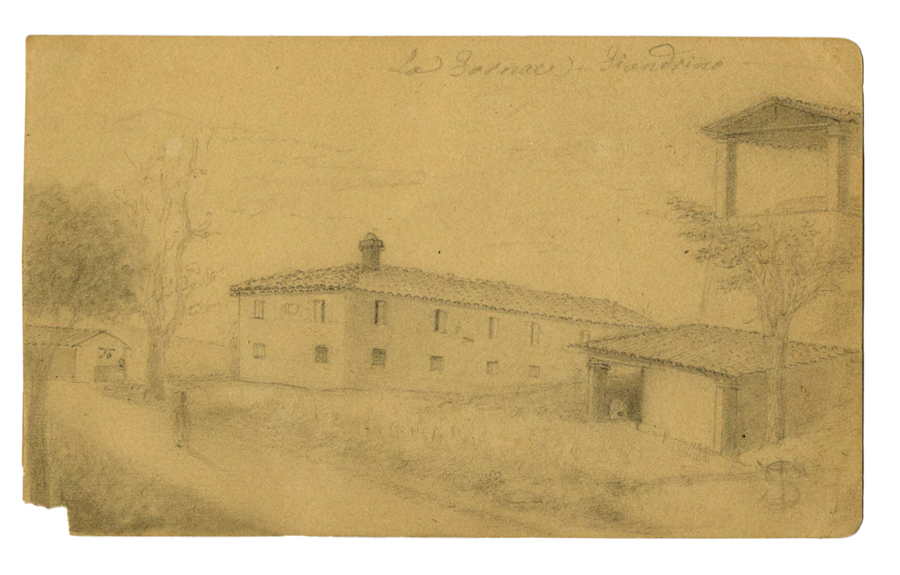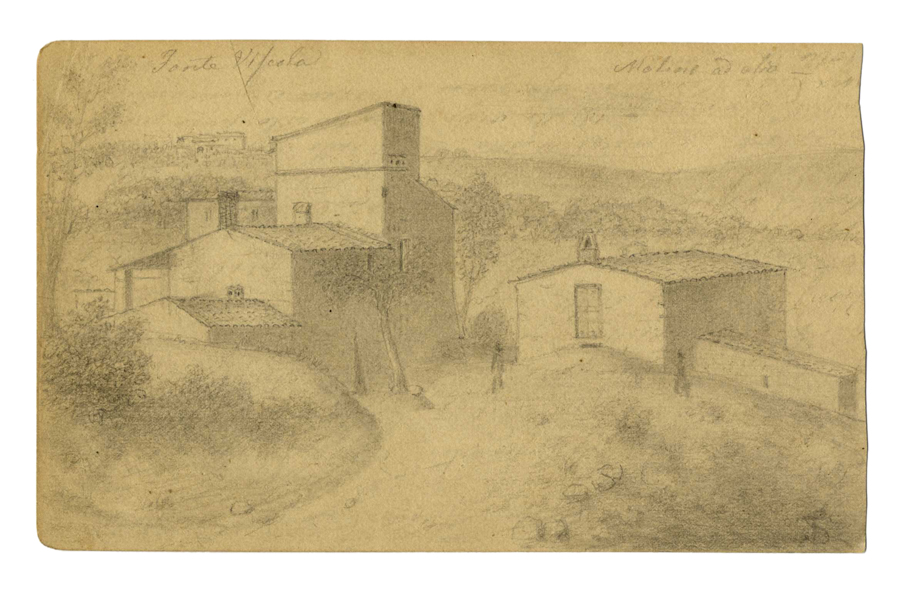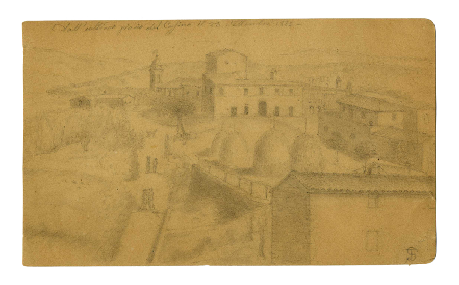 Telemaco Signorini, Lotto composto di 21 disegni su 16 fogli. 1882. Matita su carta. mm 115x190 cad. Tutti firmati o monogrammati, alcuni datati, molti titolati, anche se alcuni in modo indecifrabile. Tra i titoli: Casetta del campanaro, Vignaglia, Fattoria..., Pelosella, La Villa..., La Fornace..., Fonte Viscola, Dall'ultimo piano del Casino, Le Grotte..., Casa Parrocchiale. La maggior parte dei fogli sembrano provenire dal medesimo quadernetto di schizzi, pochi disegni sono appunto schizzi. La qualità di questi scorci toscani è molto alta, accompagnata da un'eccezionale cura per il dettaglio.