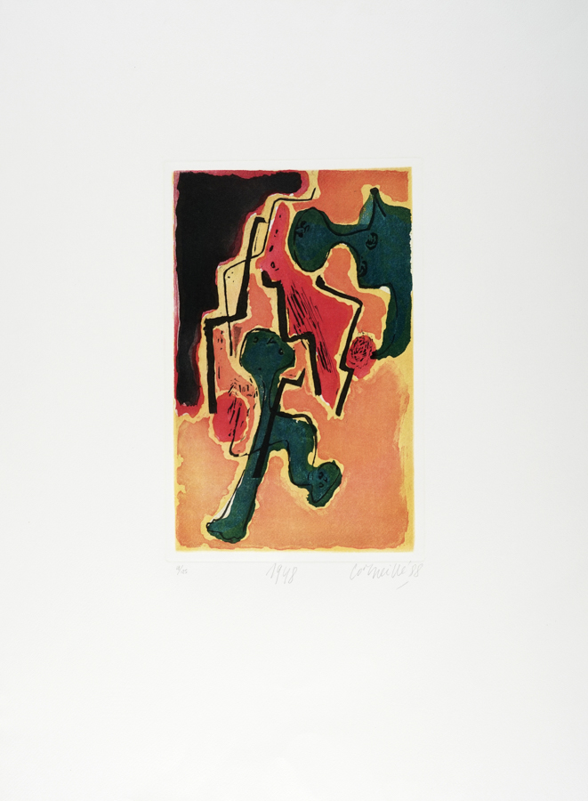 Corneille [pseud. di Guillaume Cornelis Beverloo], 1948. 1988. Acquaforte a colori. mm 390x250. Foglio: mm 805x600. Firma e data a matita in basso a destra, titolo al centro e tiratura in basso a sinistra. Es. 18/125. (1)