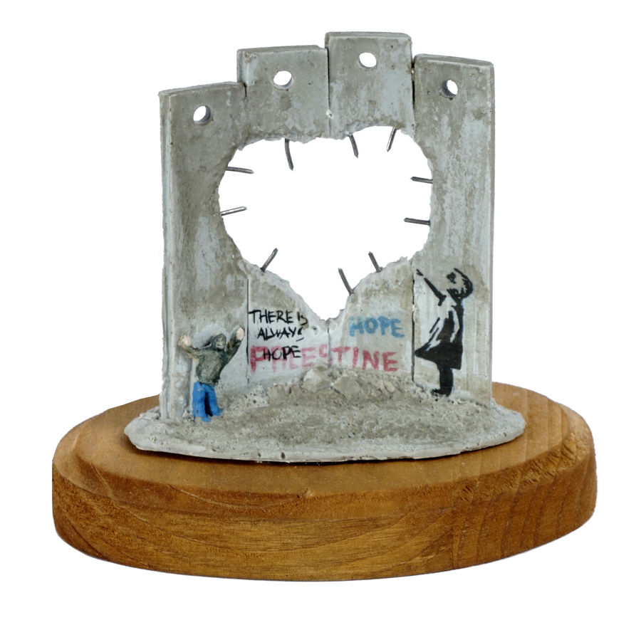 Banksy, The Walled Off Hotel. The Balloon Girl. 2017. Resina e basamento in legno. cm 12x12x8,8. Opera accompagnata dal biglietto da visita dell'Hotel e dalla ricevuta di acquisto con doppio timbro. Opera contrassegnata dal codice: 40012678D. (1)