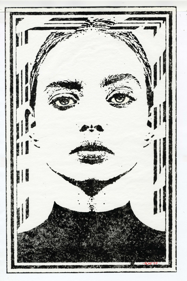 Ache77, I resist. Xilografia su velina. mm 393x252. Firma a penna e inchiostro di china rosso in basso a destra. (1)
