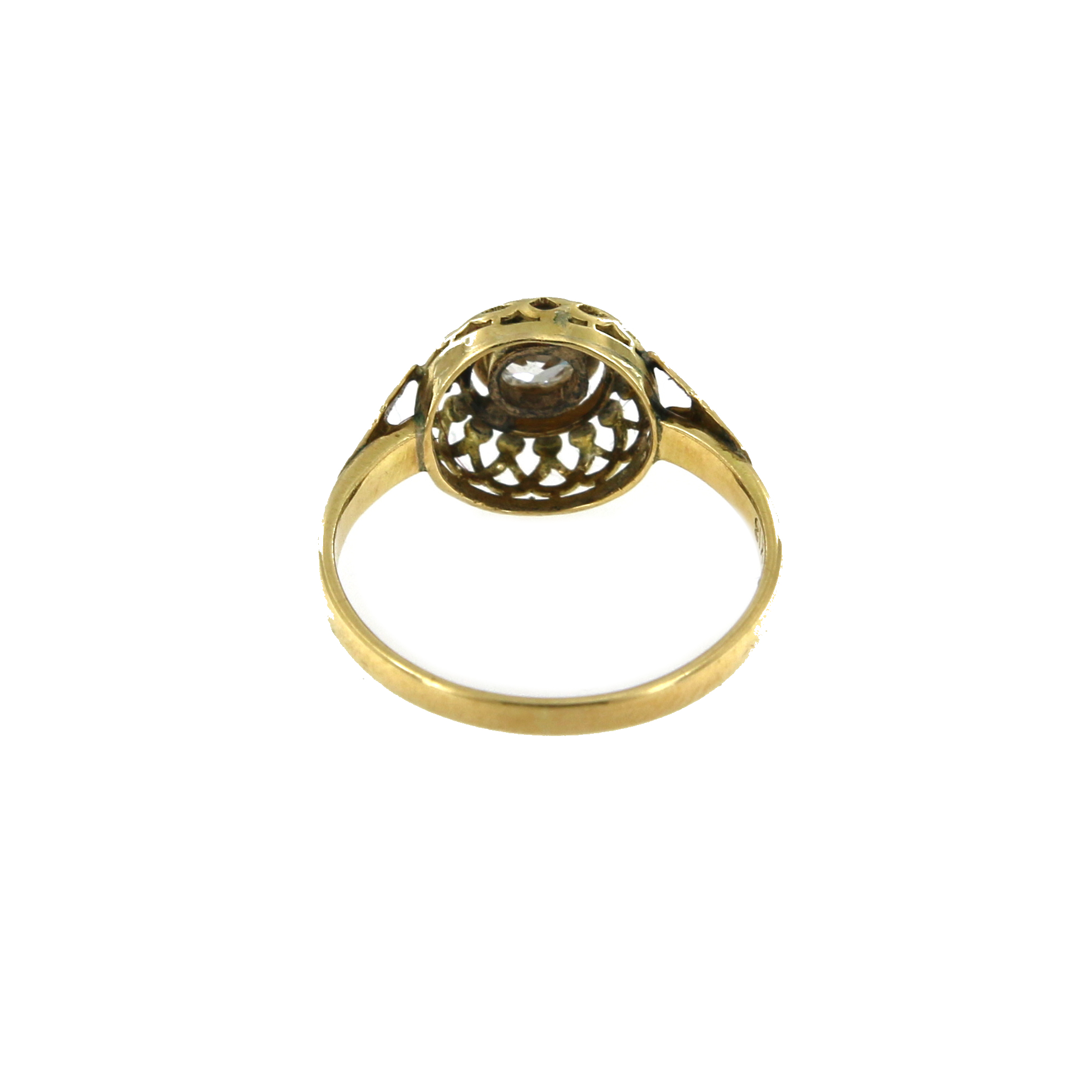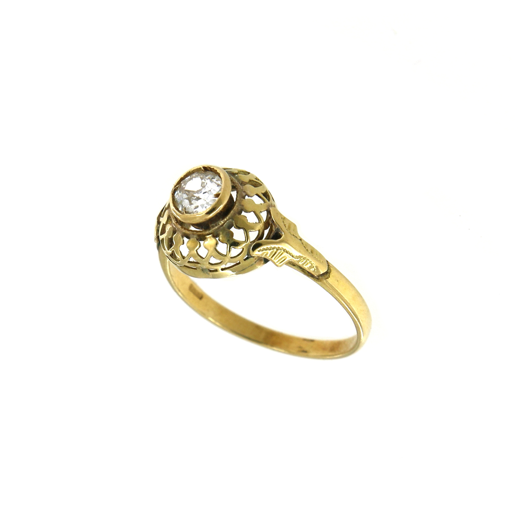 Anello solitario in oro giallo 18 kt con diamante taglio vecchio a brillante per ct 0,40 ca, misura 55, grammi 2.30