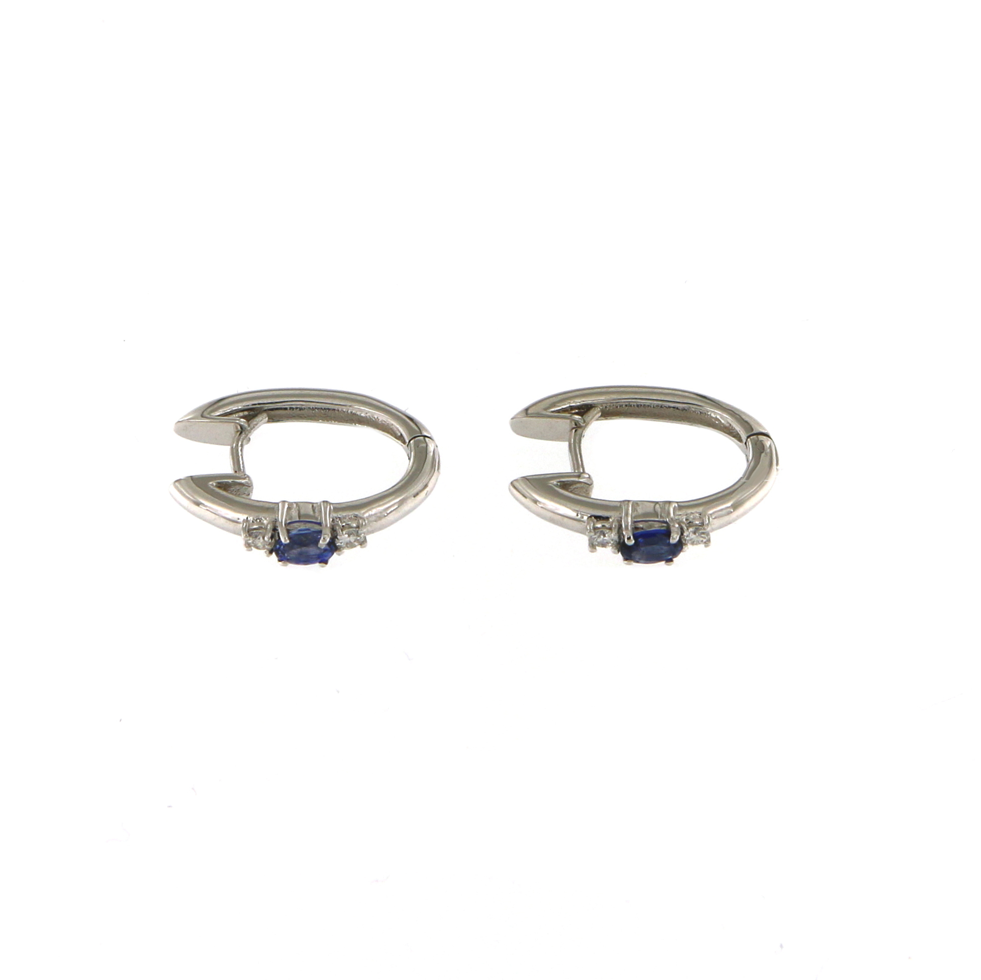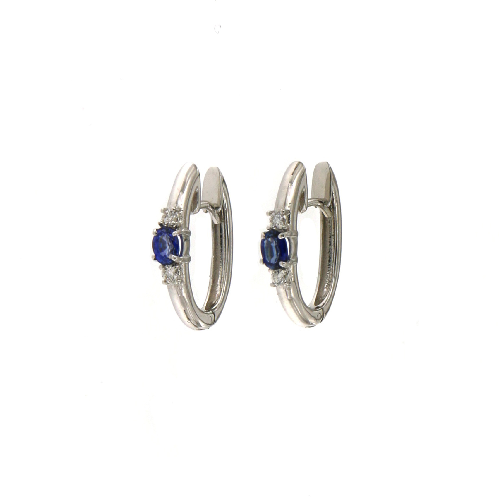 Orecchini cerchio in oro bianco 18 kt con zaffiri per complessivi ct 0,50 ca e diamanti per complessivi 0,10 ca, diametro cm 1.8, grammi 4.00