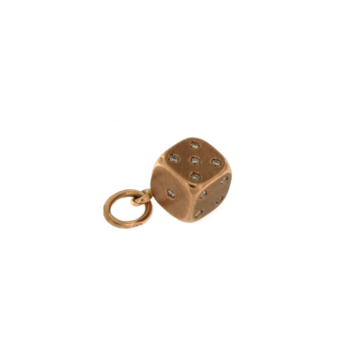 Dodo Pomellato ciondolo dado in oro rosa 9 kt con diamanti taglio a brillante, lunghezza cm 1.5, grammi 4.50
