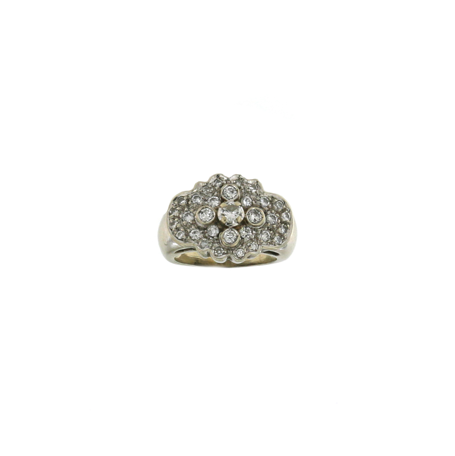 Anello diamanti in oro giallo 18 kt con diamanti taglio a brillante per complessivi ct 0,90 ca, misura 50, grammi 11.00