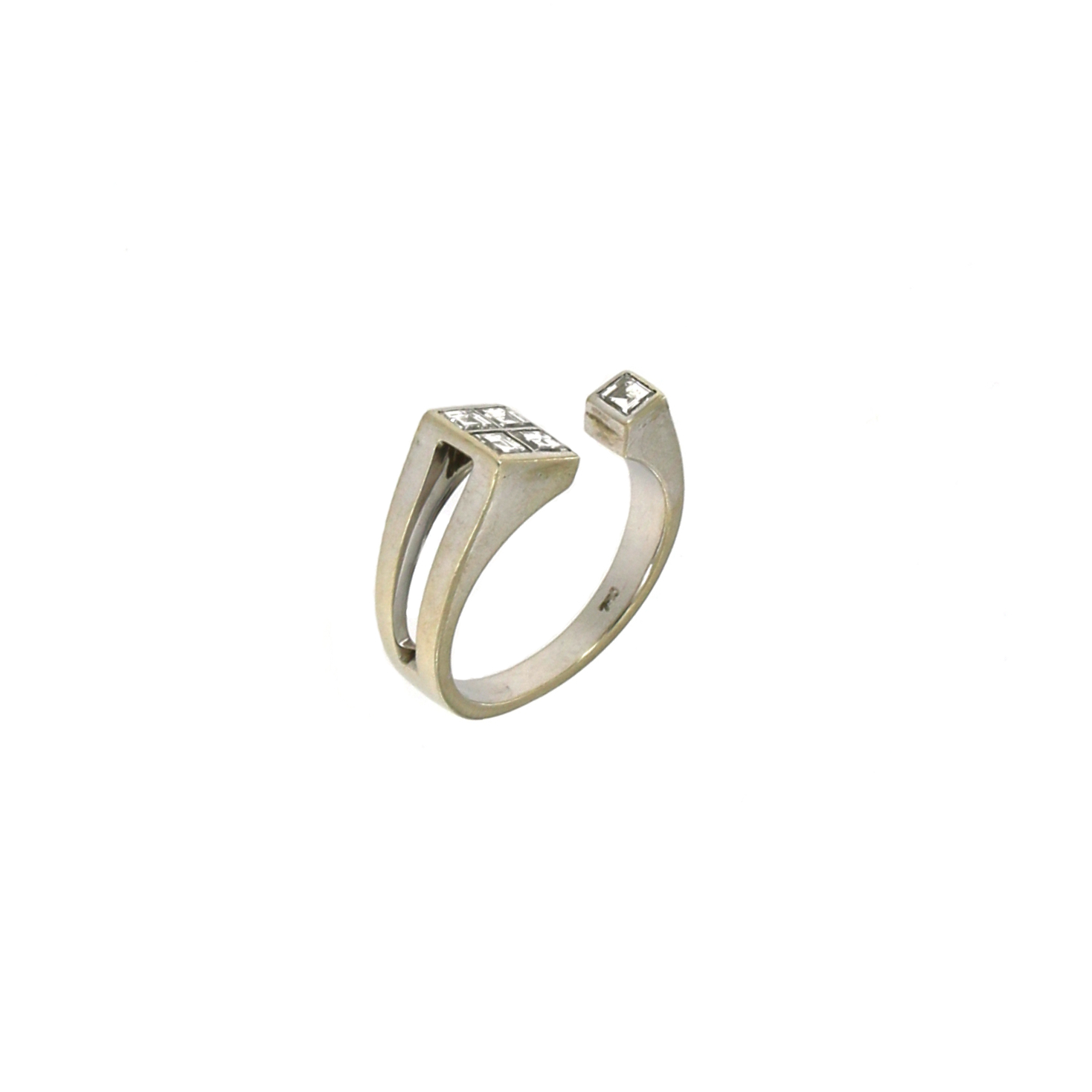 Anello diamanti in oro bianco 18 kt con diamanti taglio a carrè per complessivi ct 0,75 ca, misura 55, grammi 6.10