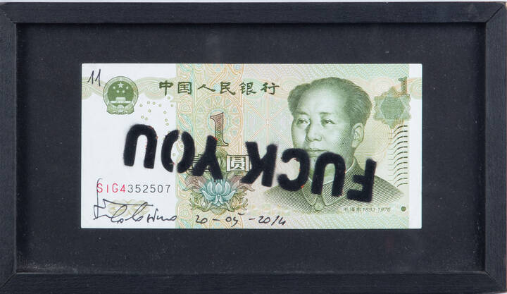 Opera firmata e datata in basso a sinistra; iscritta "Fuck you" al rovescio a stampa; firmata, intitolata e datata al retro