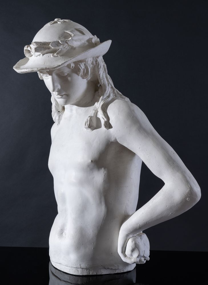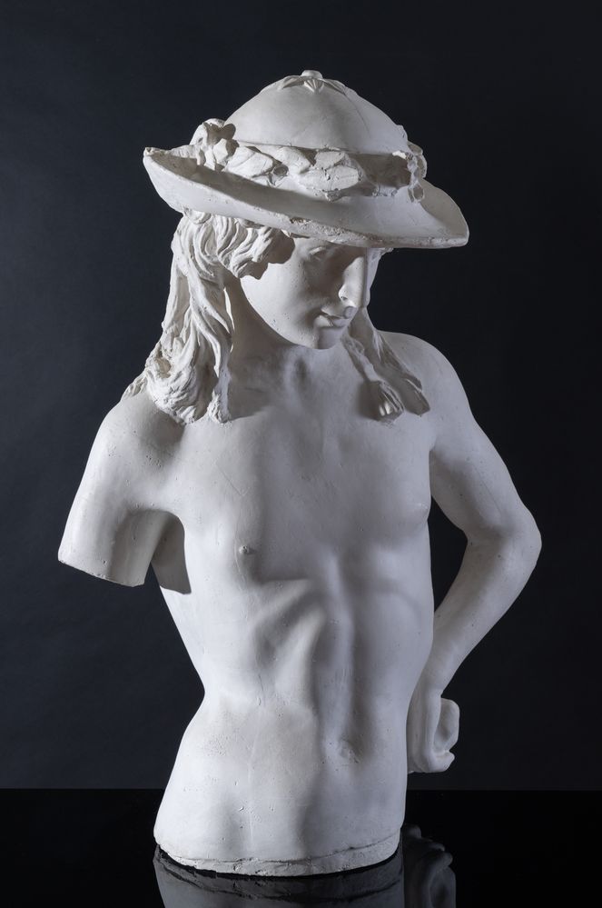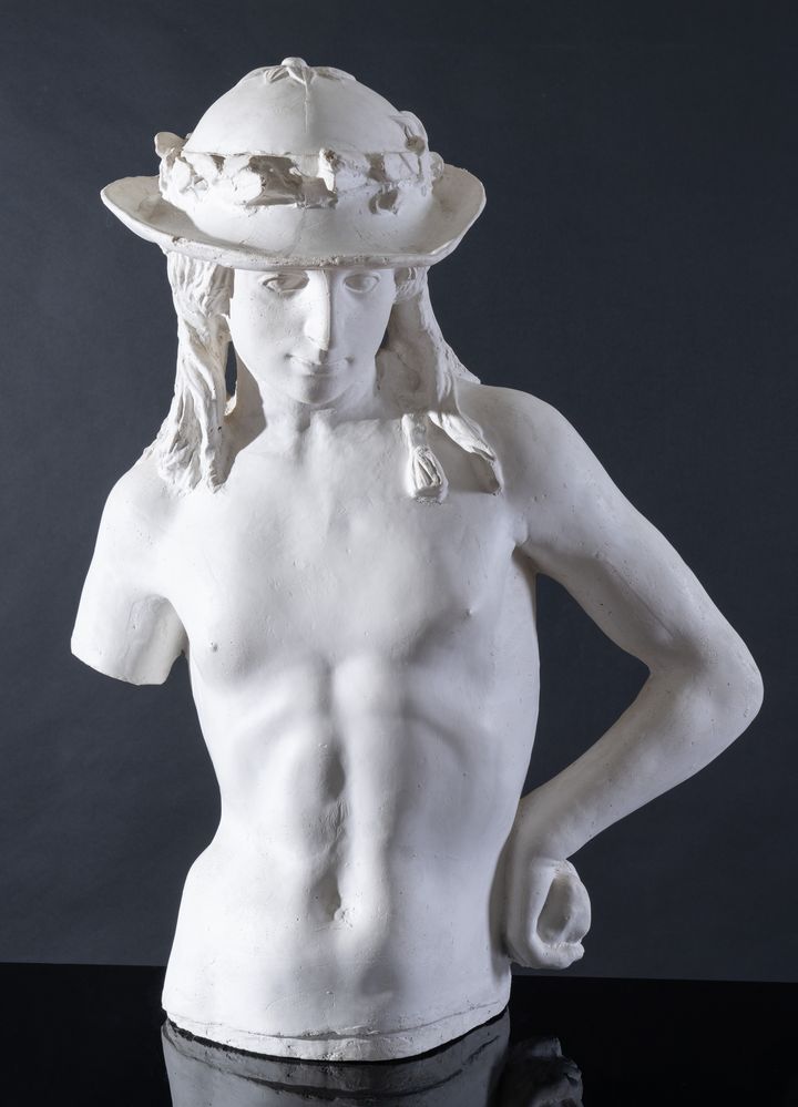 Manifattura italiana del XIX secolo - XX secolo. Calco in gesso raffigurante il busto di David, copia da Donatello. Cm 72,5x56x35.