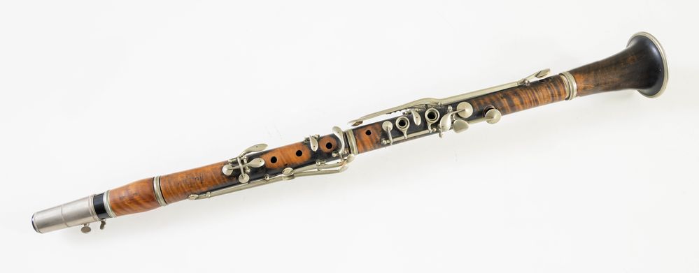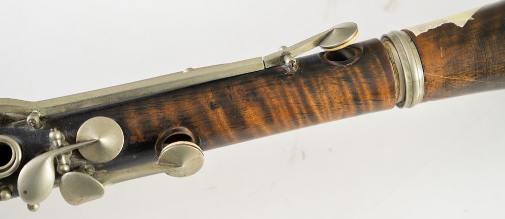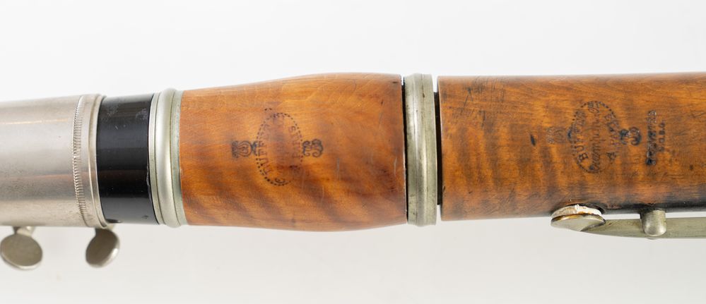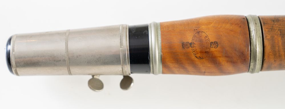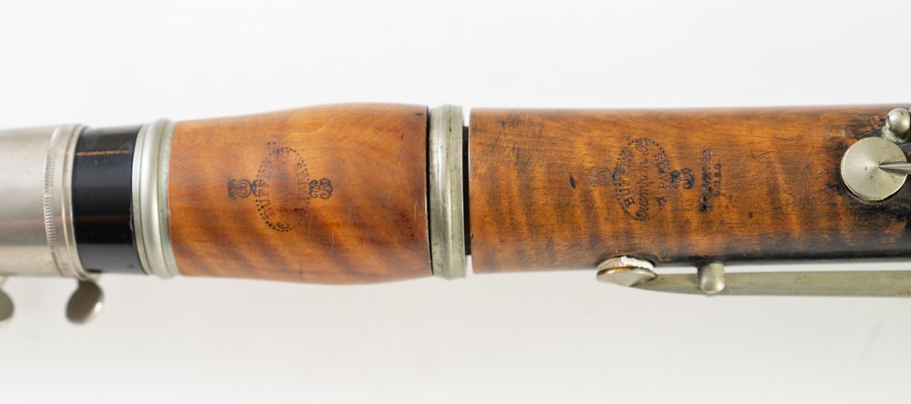 Clarinetto in legno. Francia, fine XIX secolo. Cm 70 x diametro 8. Reca marchio Buffet Crampon, Paris, in tutte le parti. (difetti)